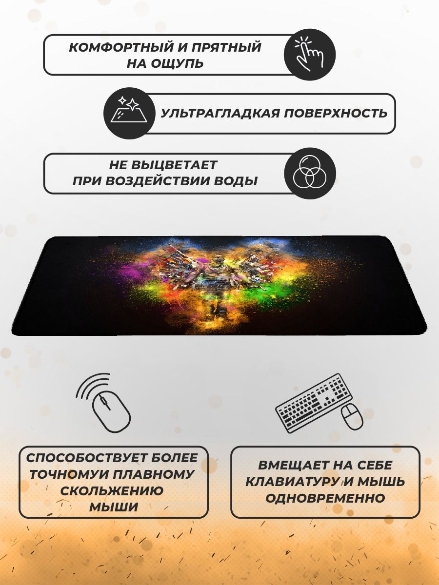 Описание: RUKOVRIK - это симбиоз расширенного функционала и стильного внешнего вида аксессуаров! Наш большой коврик для мыши 80х30 см так же предназначен для расположения клавиатуры.Ковер для мышки предотвращает непреднамеренное скольжение клавиатуры и мыши, что очень удобно в моментах, когда даже один сбой способен нарушить все ранние действия. Коврик для мыши и клавиатуры универсален, он подходит для всех типов мышей. Внешнее покрытие тканевого коврика для мышек из плотного переплетения нитей обеспечивает точное движение мышки без задержек, а основание из вспененной резины обеспечивает прочное сцепление со столом и любой поверхностью - препятствует скольжению.Благодаря технологии Speed and Control (покрытие высокого сопротивления) перемещение курсора становится наиболее точным. Такой игровой коврик для мыши отличаются плавностью движений!Наши линейка ковриков для мыши с рисунками представляет множество различных моделей. Коврик для мыши с принтом очень стильный с отличной работоспособностью!