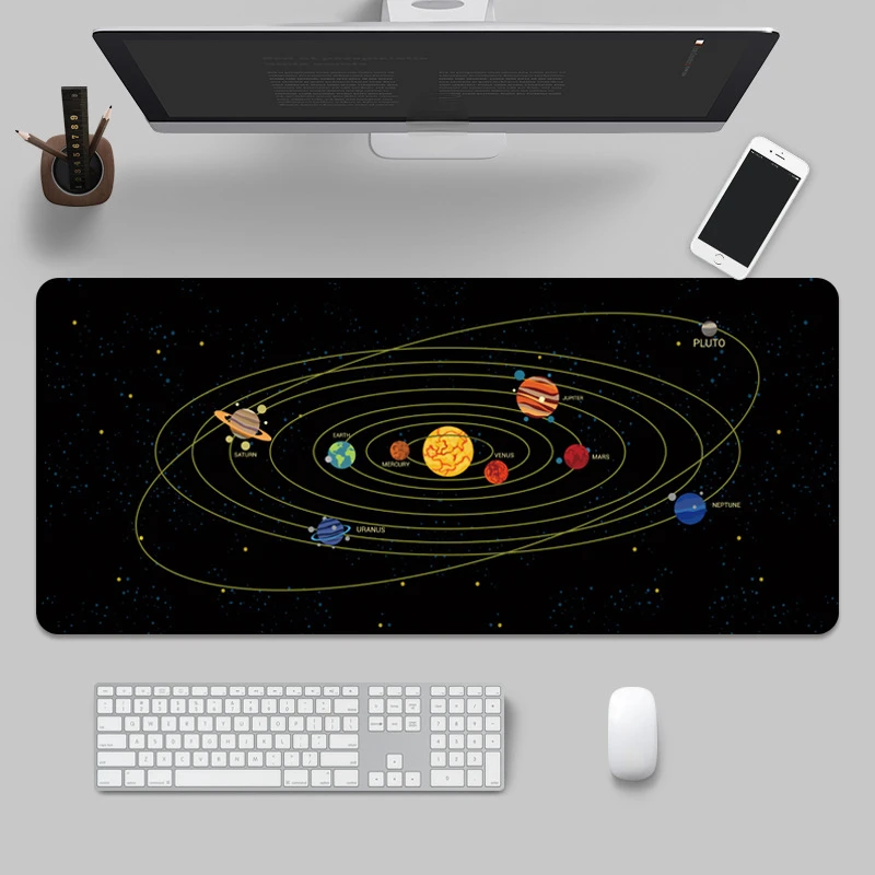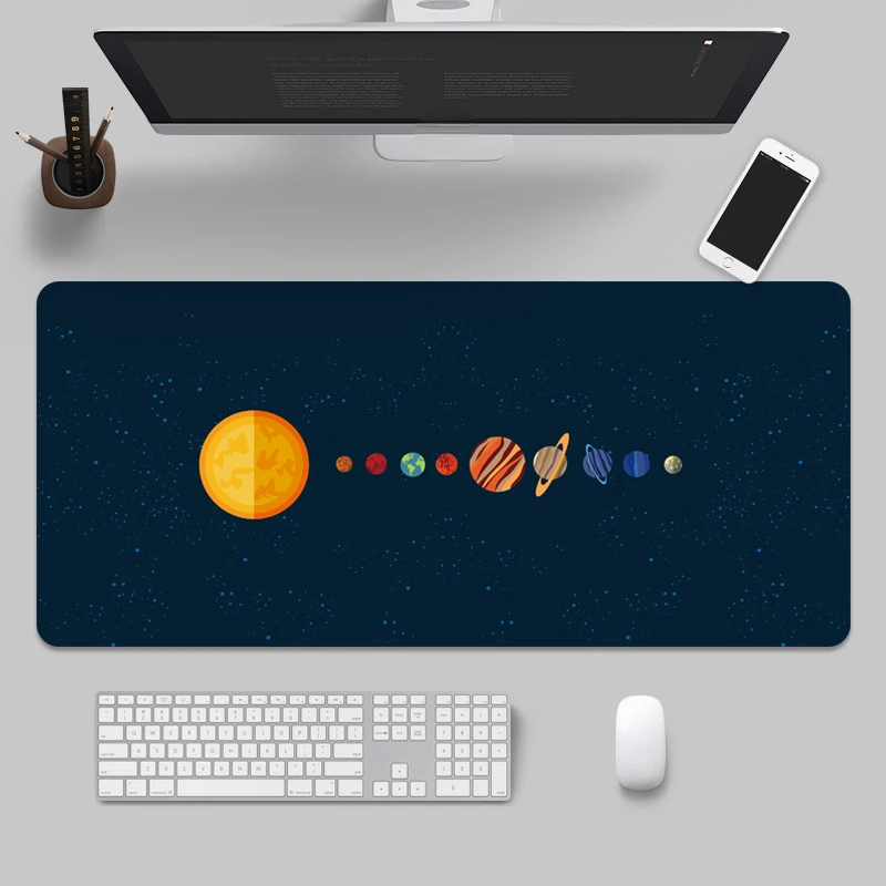 Коврик для мыши с изображением космоса, планеты, настольного компьютера, большой резиновый коврик для клавиатуры, компьютерная мышь, противоскользящий дизайн, блокировка края компьютера, Pa
