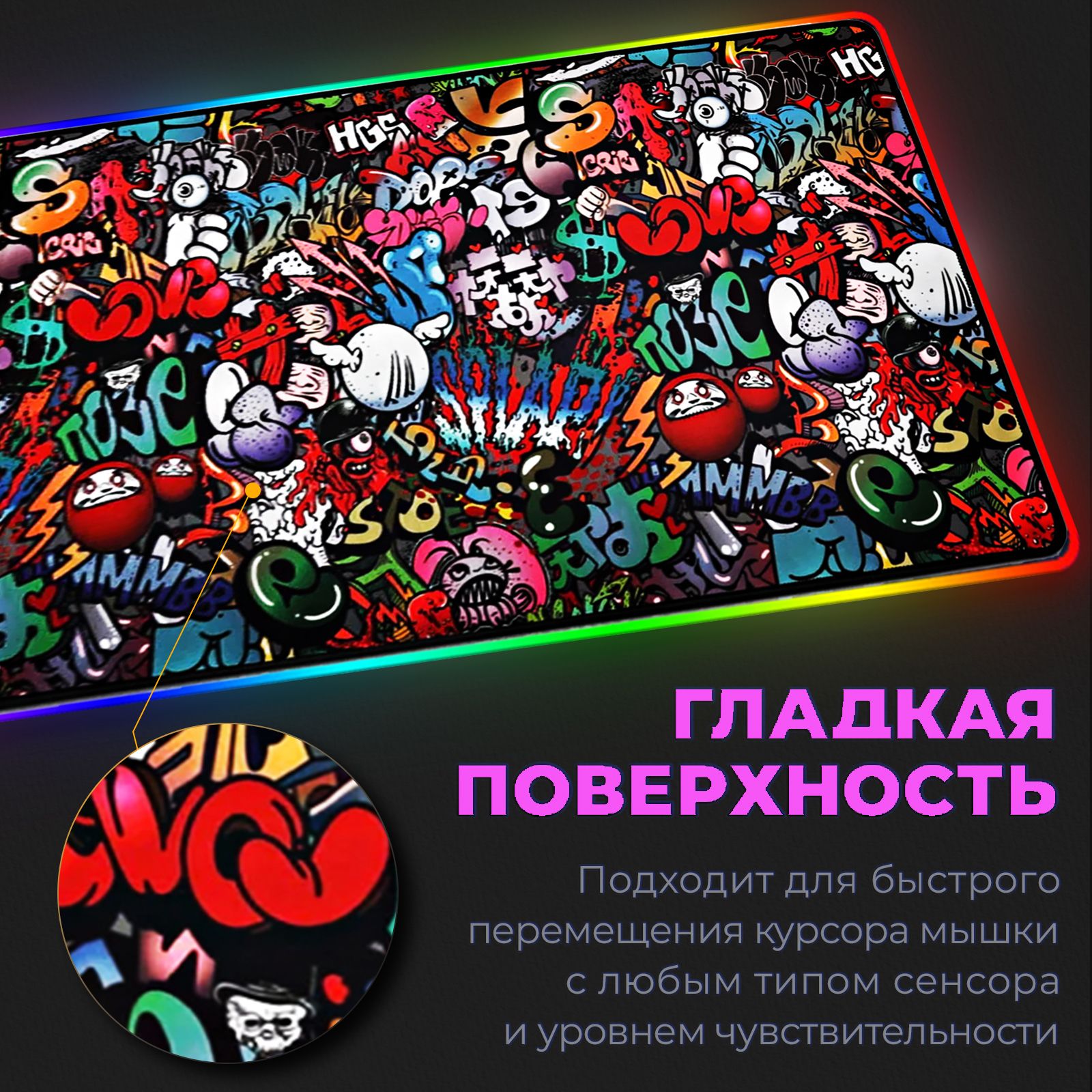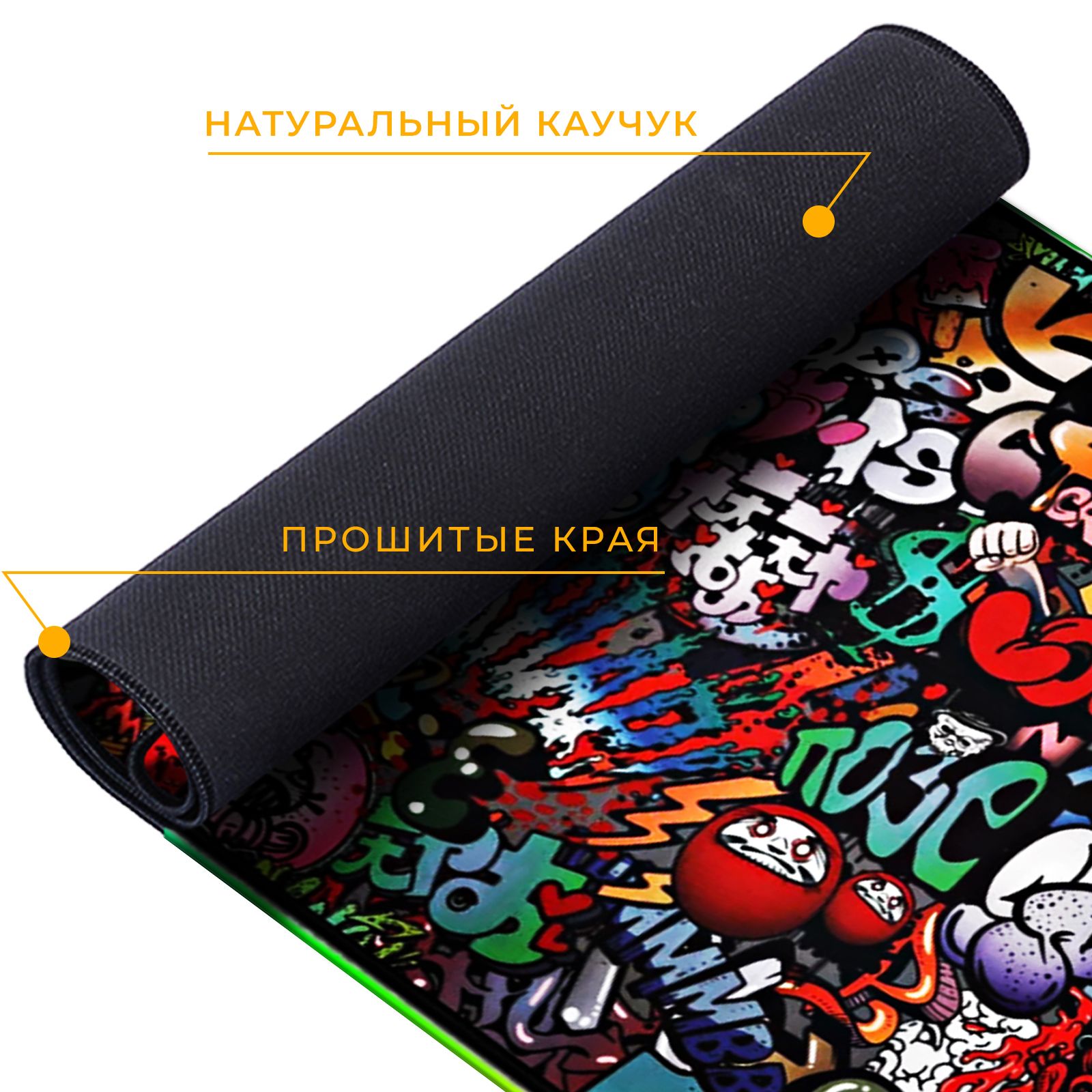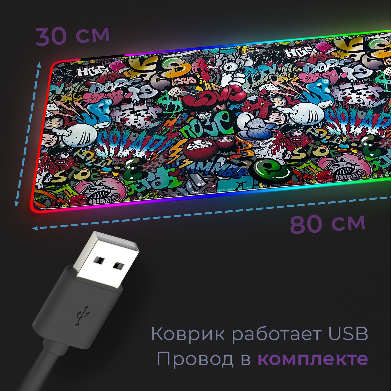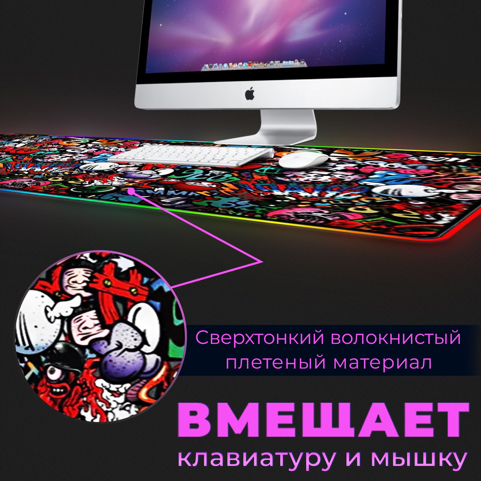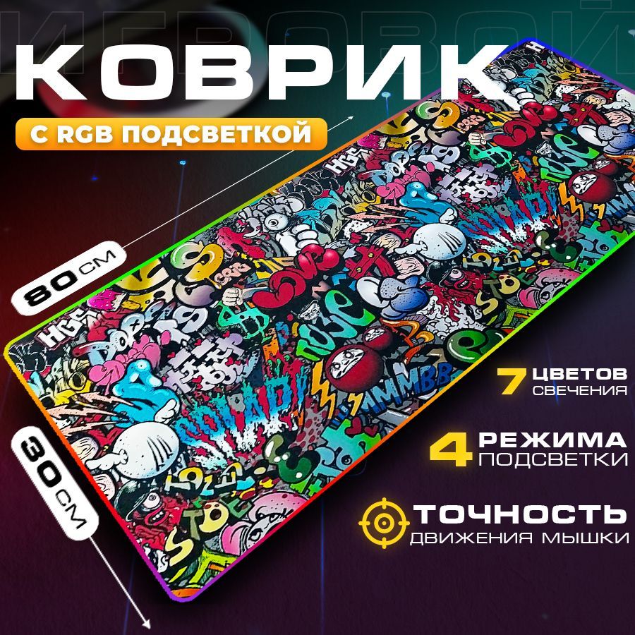 Коврик для мыши с подсветкой компьютерный большой игровой 80 x 30 см Zerty