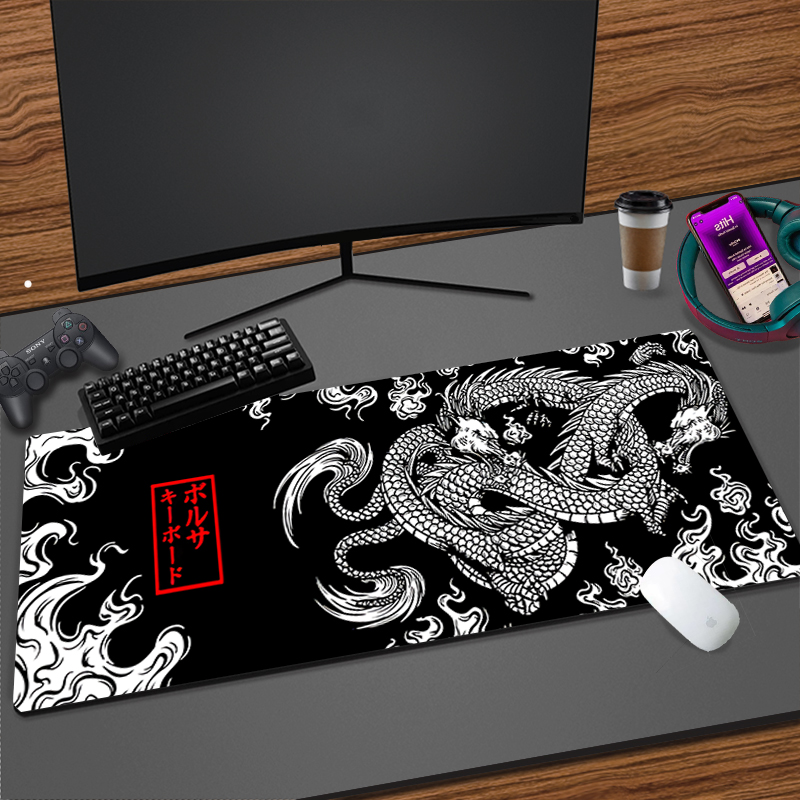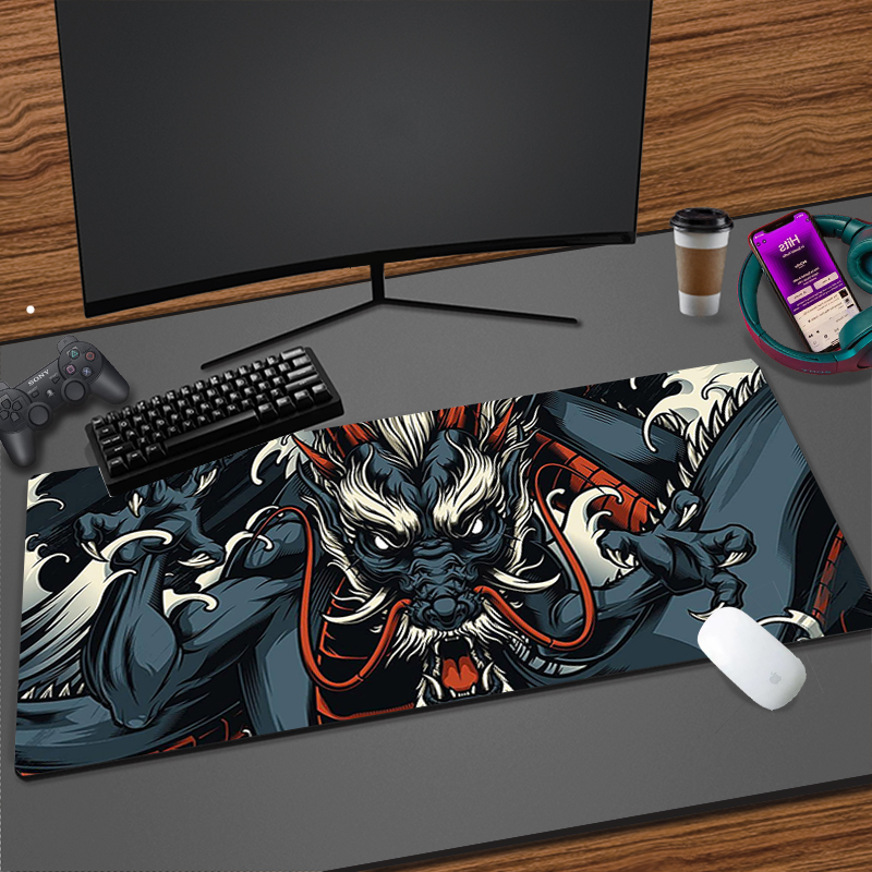Коврик для мыши с японским рисунком дракона для офиса, аксессуары для игровой комнаты, Настольный коврик, коврики для клавиатуры ноутбука XXL 900x400 от компании Mausepad