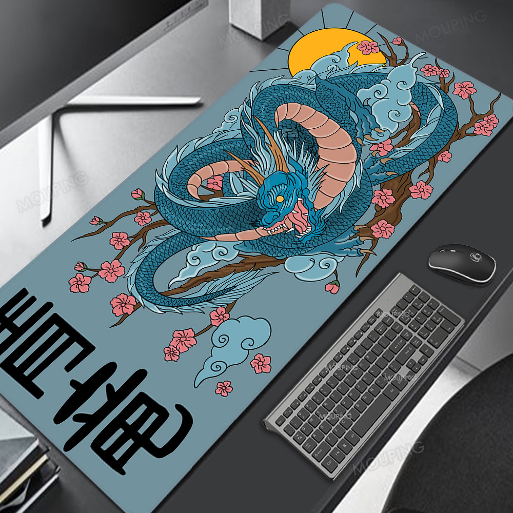 Коврик для мыши с желтым драконом, японский черный игровой коврик для настольного компьютера, резиновый коврик для игровой клавиатуры в стиле аниме, коврик для мыши на столе, коврик для ПК