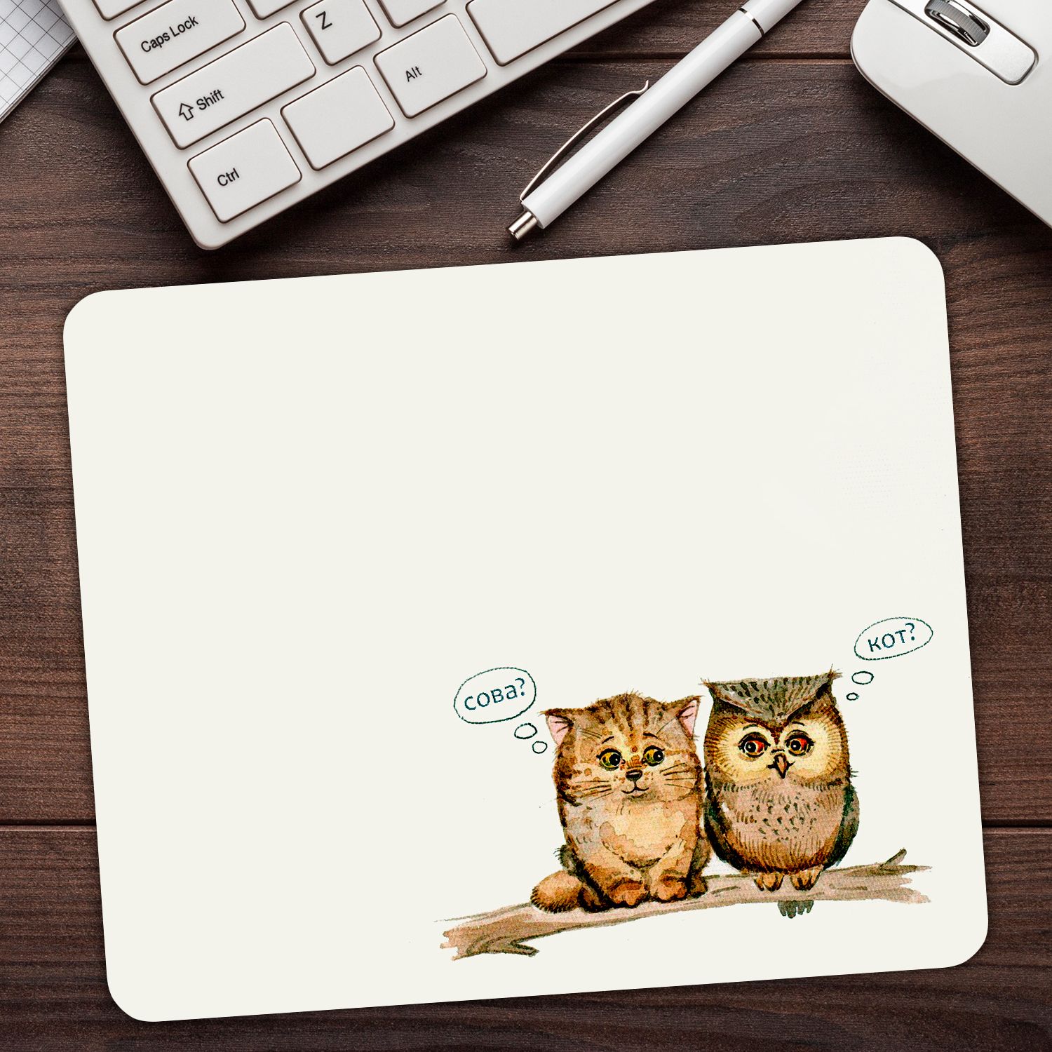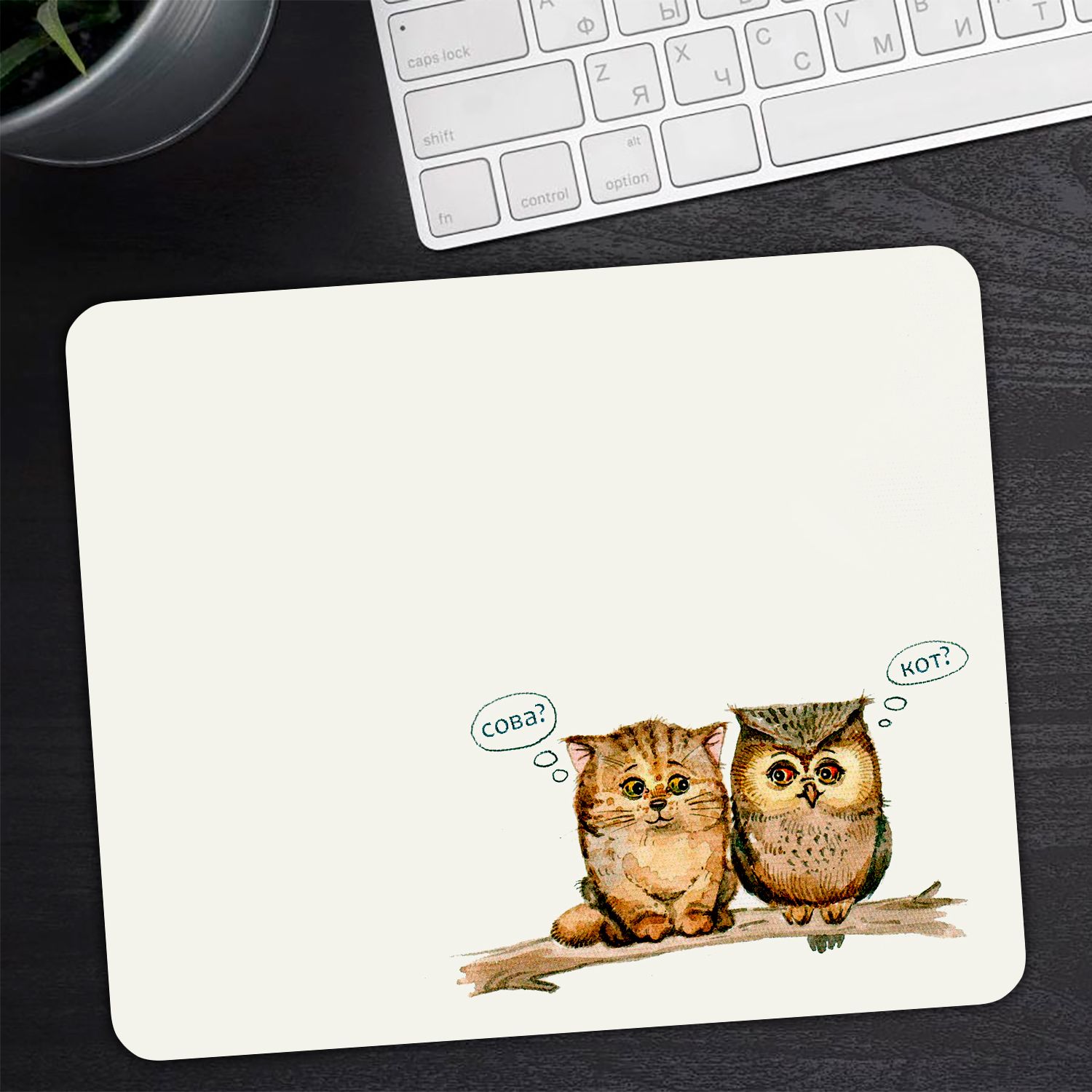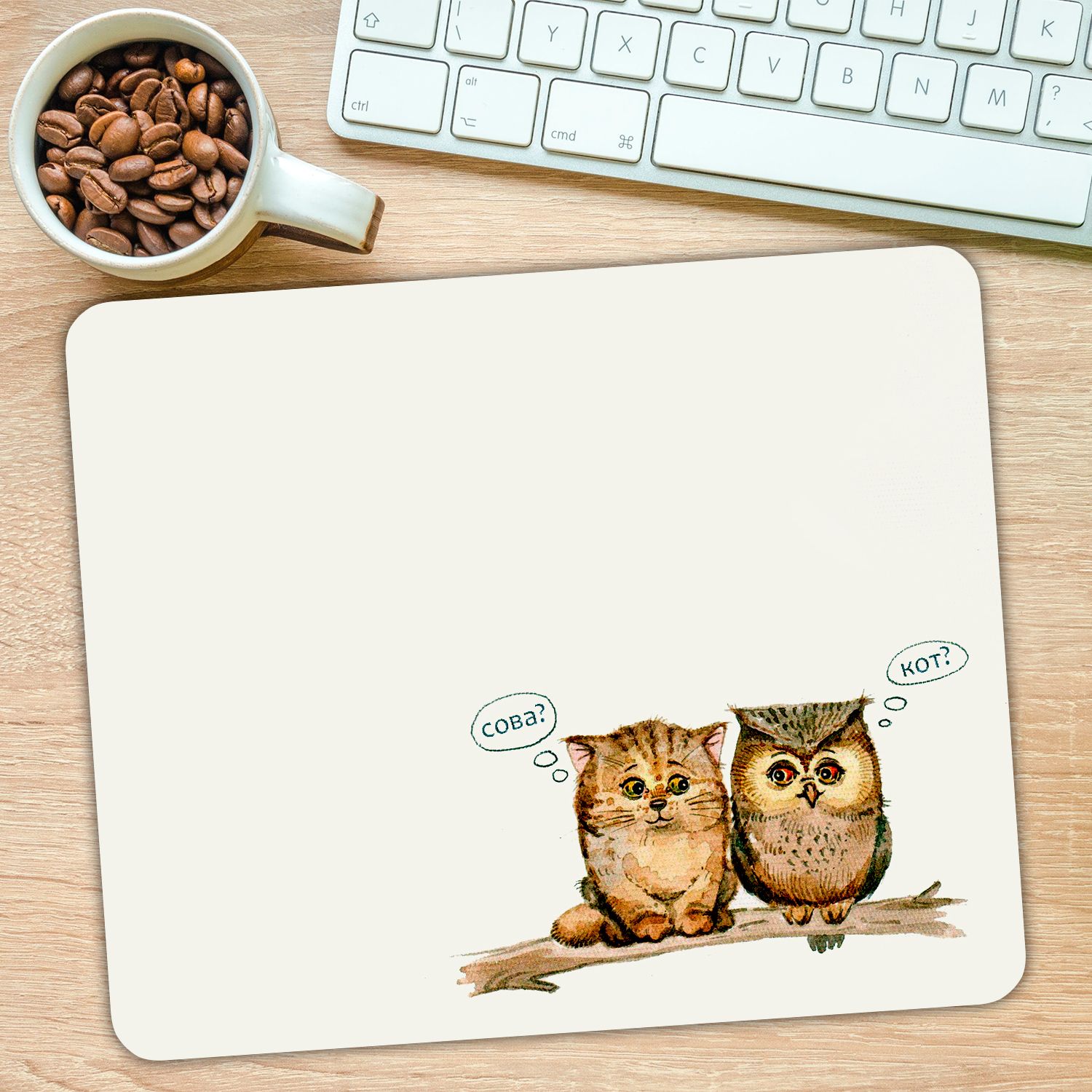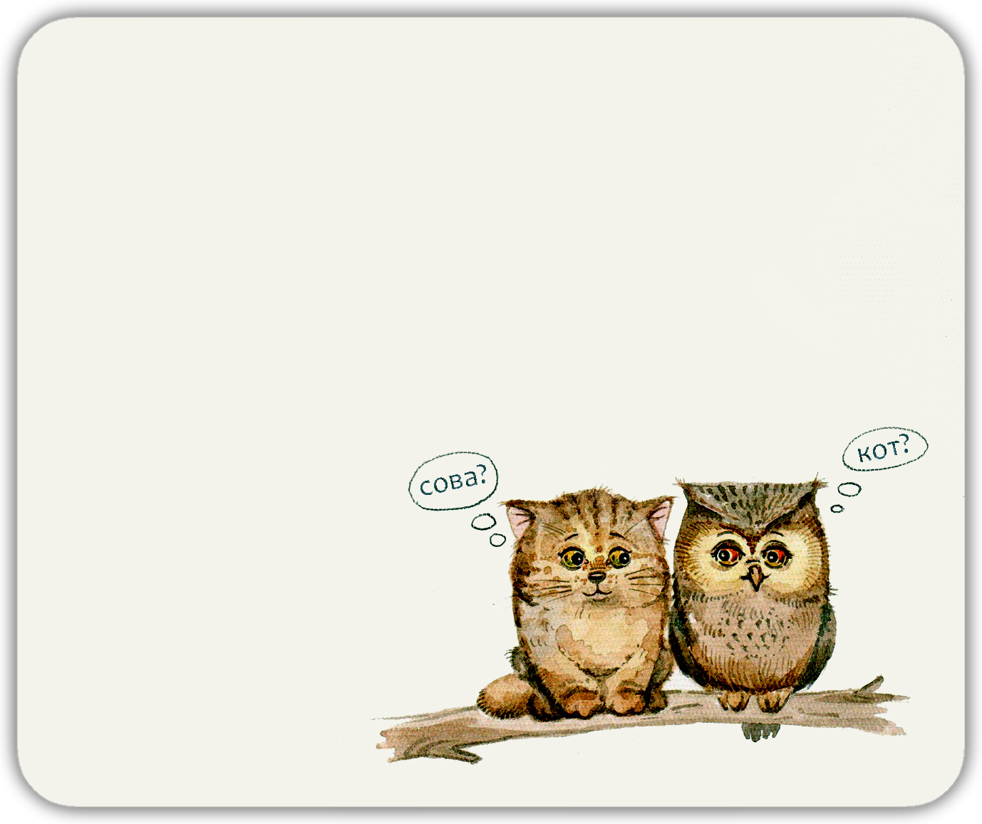 Коврик для мыши "Совёнок и котёнок на ветке" (24 x 20 см x 3 мм)