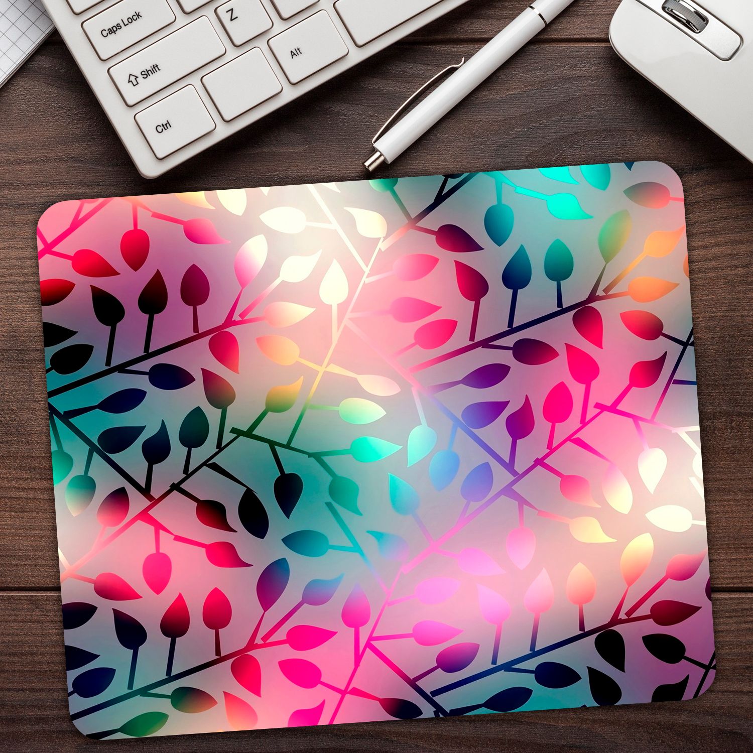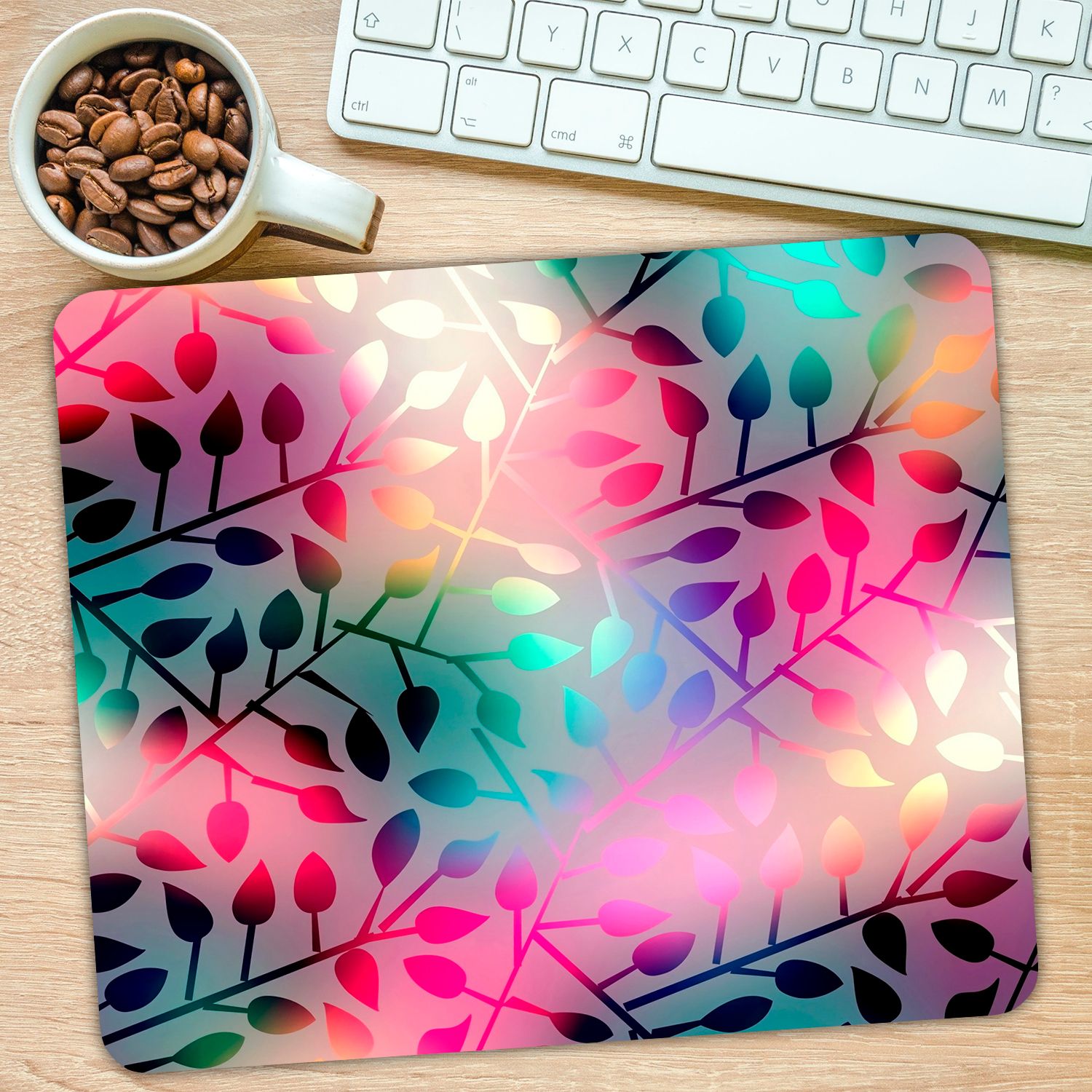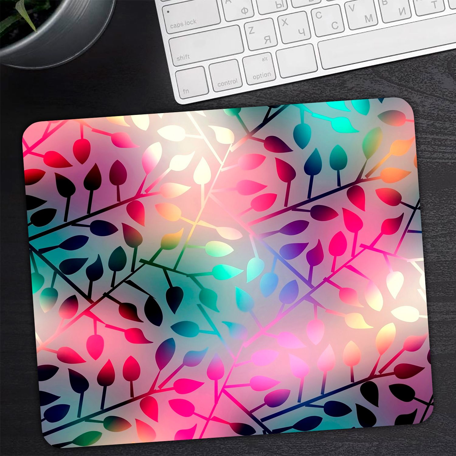 Коврик для мыши "Яркий красивый минимализм с цветными листями на матовом стекле" (24 x 20 см x 3 мм)