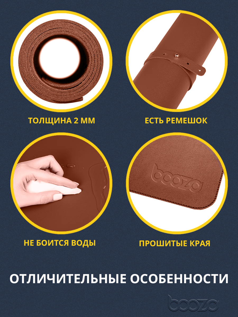Описание: Фирменный коврик boozoМожно поместить ноутбук, блокнот, мышку, телефон и прочие предметы для удобной работы.Премиум качествоНаш коврик для мышки boozo прочный и долговечный. Мы доработали качество эко кожи до идеала. Также наш коврик не скользит на столе, что дает вам удобную и комфортную работу за компьютером.Стильный аксессуар для столаАккуратно прошиты краяИндивидуальный заказ для компании boozoВыбери свой любимый цвет:)