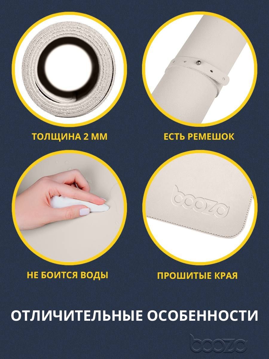Описание: Фирменный коврик boozoМожно поместить ноутбук, блокнот, мышку, телефон и прочие предметы для удобной работы.Премиум качествоНаш коврик для мышки boozo прочный и долговечный. Мы доработали качество эко кожи до идеала. Также наш коврик не скользит на столе, что дает вам удобную и комфортную работу за компьютером.Стильный аксессуар для столаАккуратно прошиты краяИндивидуальный заказ для компании boozoВыбери свой любимый цвет:)