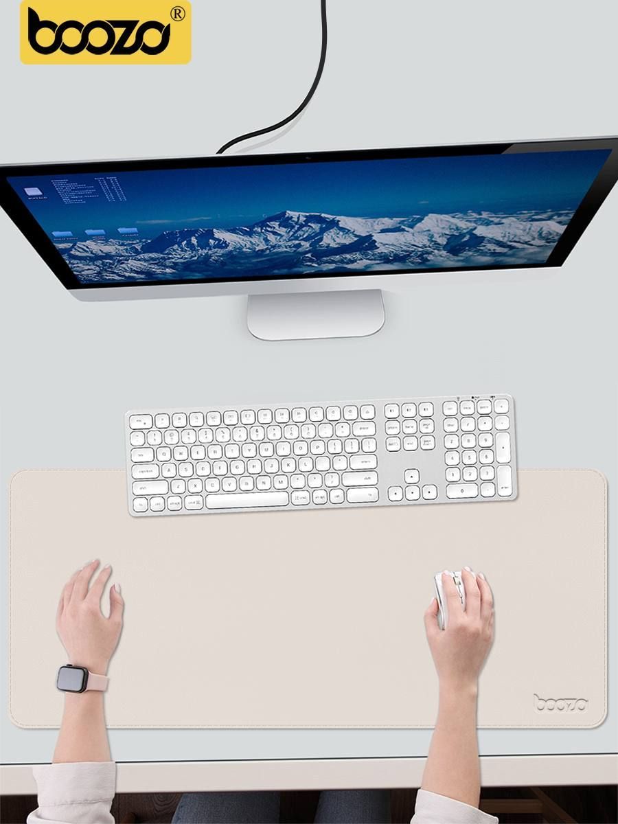 Коврик для мышки большой BOOZO Desk mate s, кожаный коврик для мышки, коврик для мышки компьютерный, серый