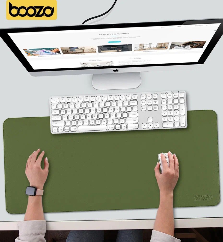 Коврик для мышки большой BOOZO Desk mate s, кожаный коврик для мышки, коврик для мышки компьютерный, зеленый