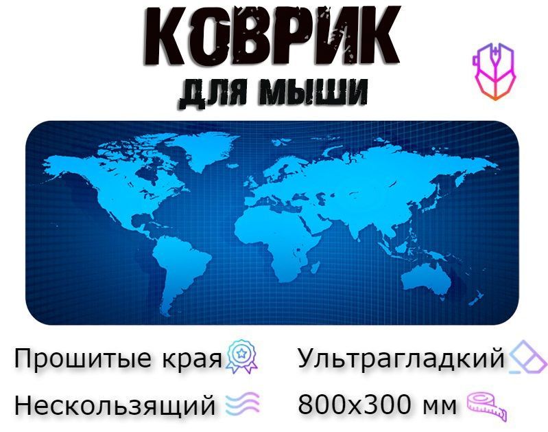 Коврик для мышки большой, игровой, прошитые края, синий, 800х300 мм