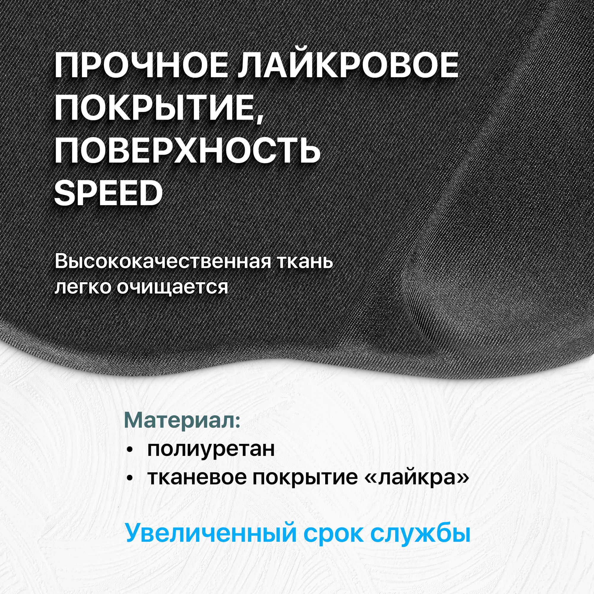 • Прочное лайкровое покрытие обеспечивает легкое движение любой компьютерной мышки по поверхности коврика.