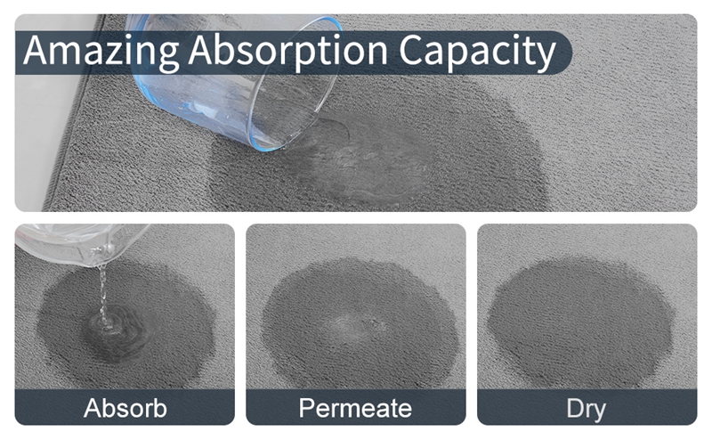 Коврики для ванной Homaxy со слоем из микрофибры из мягкого кораллового бархата могут быстро впитывать влагу, немедленно высыхать ноги, а вода не оставаться на поверхности коврика для ванной, помогает сохранить ваши полы чистыми и сухими.