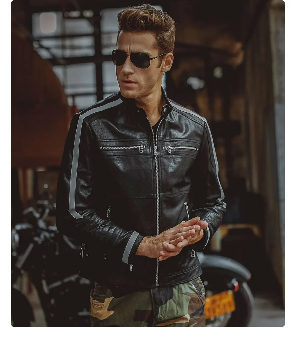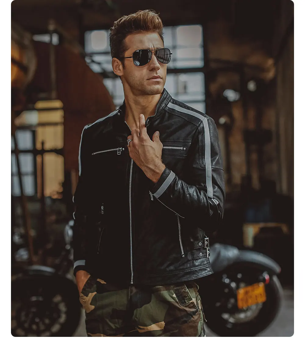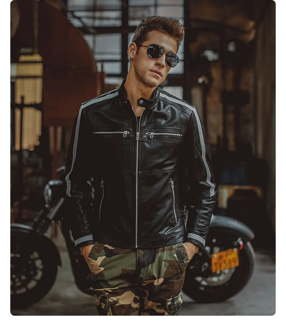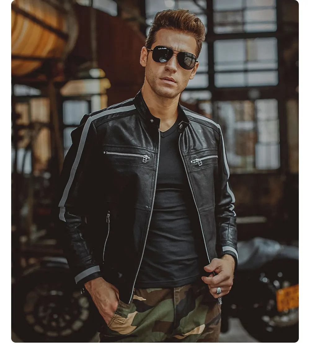 Kожаная куртка мужская байкерские жакеты из свиной шкуры, мотоциклетная, жакет из натуральной кожи, пальто для зимы