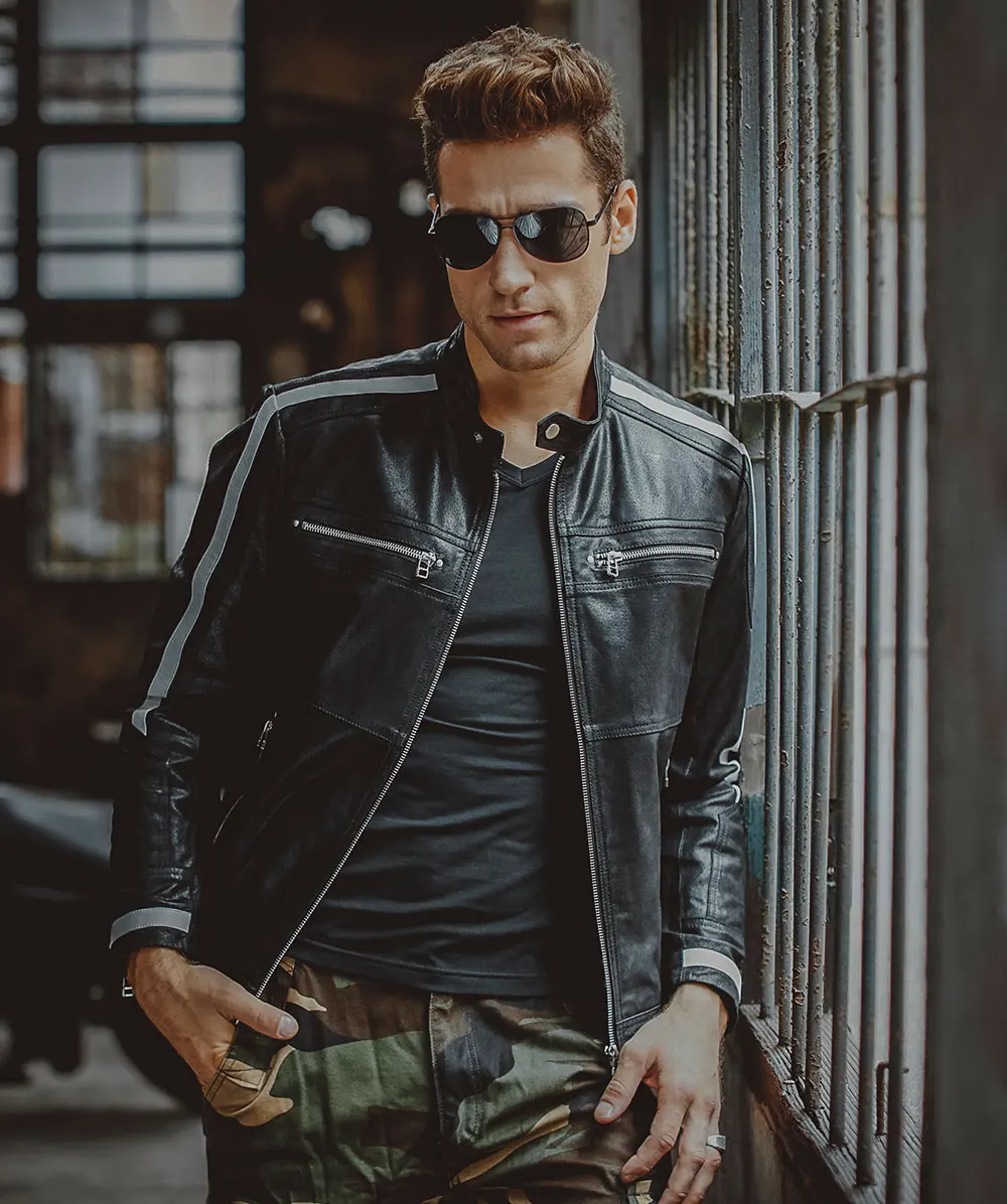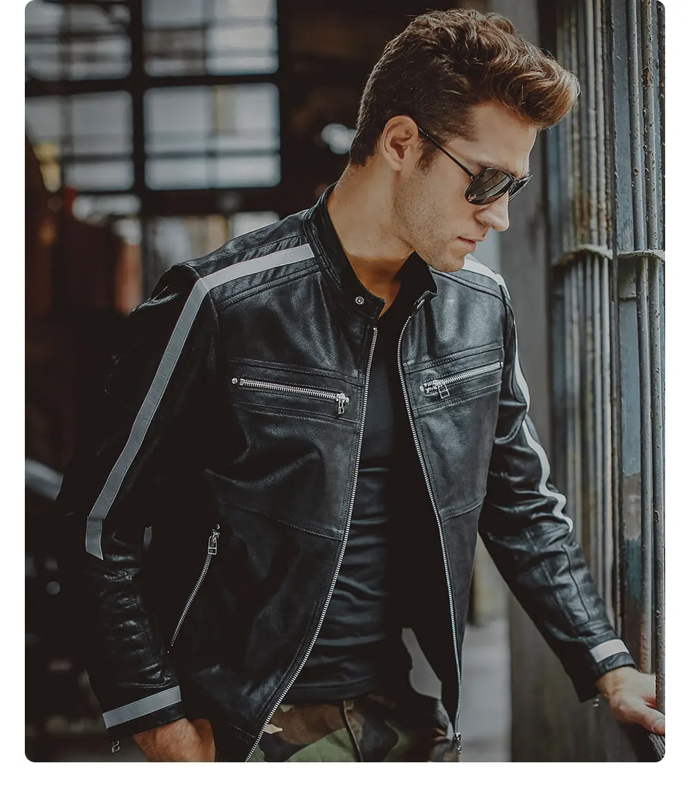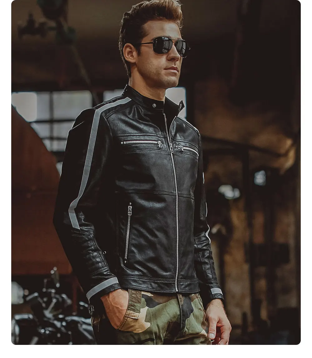 Kожаная куртка мужская байкерские жакеты из свиной шкуры, мотоциклетная, жакет из натуральной кожи, пальто для зимы