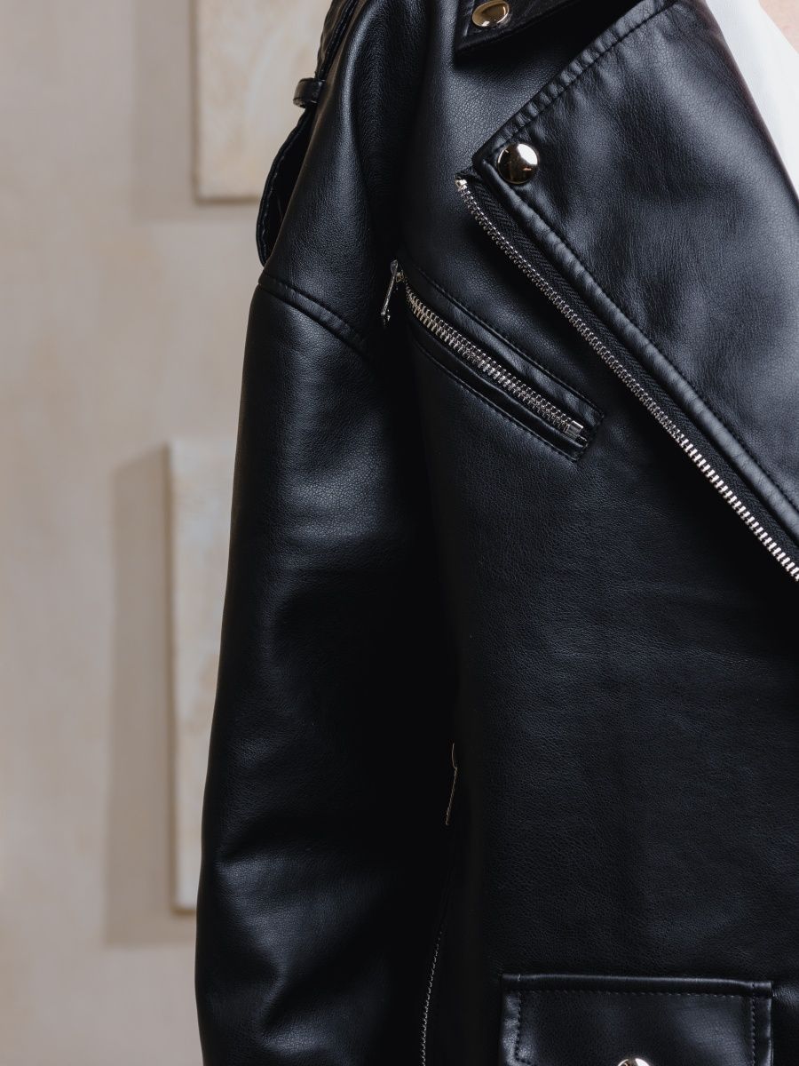 Кожаная куртка женская косуха на весну и осень оверсайз