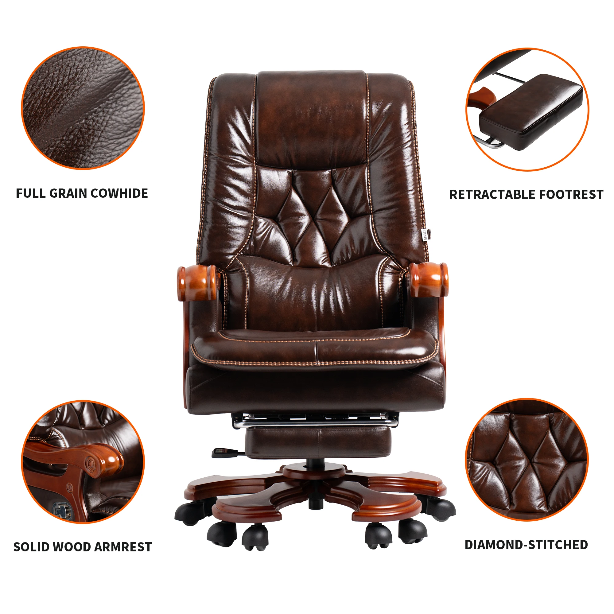 ✔Стул имеет утолщенный взрывозащищенный поднос, основание из цельного дерева и подножку для ящика. Пятизвездочная база была модернизирована (с более винтажным дизайном и более качественными материалами).