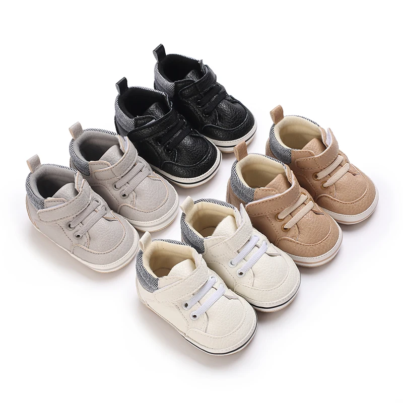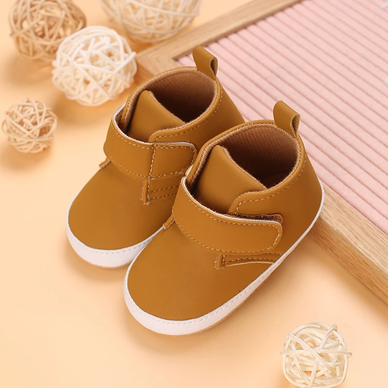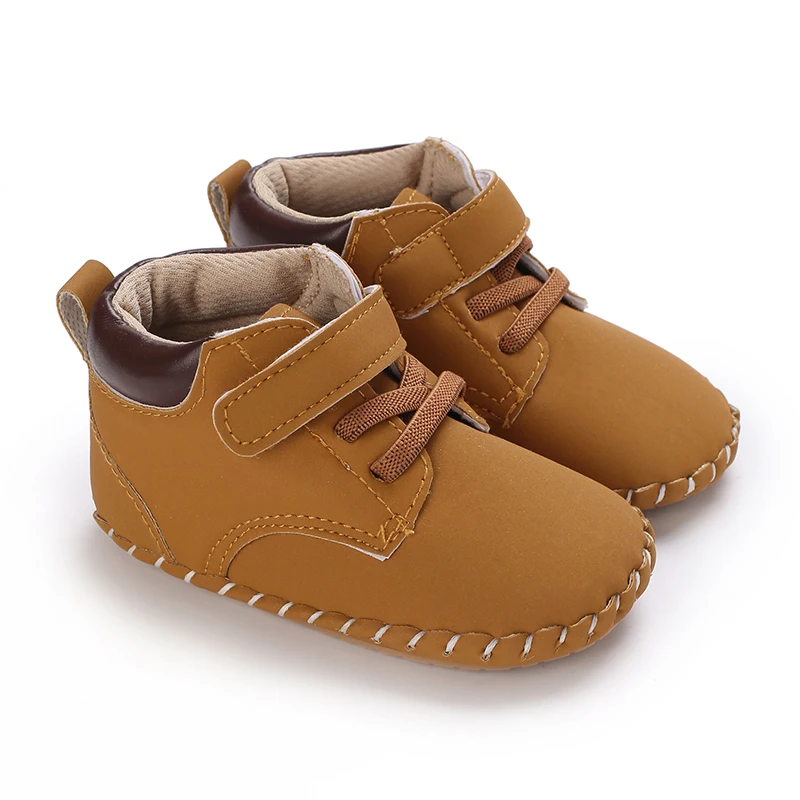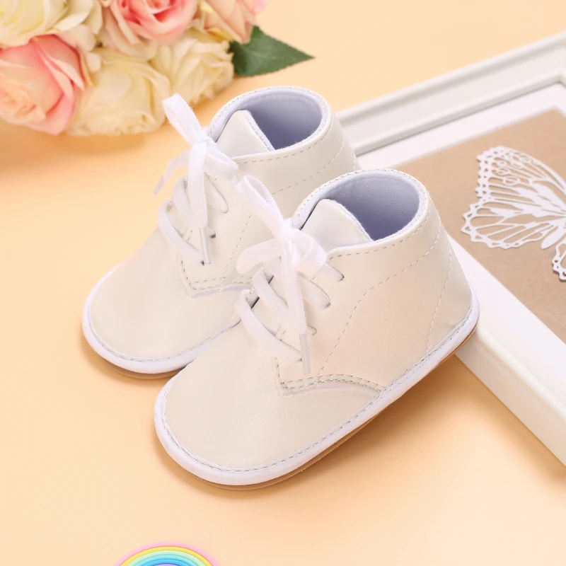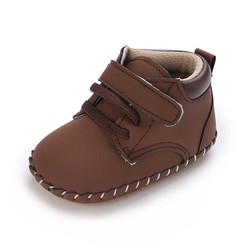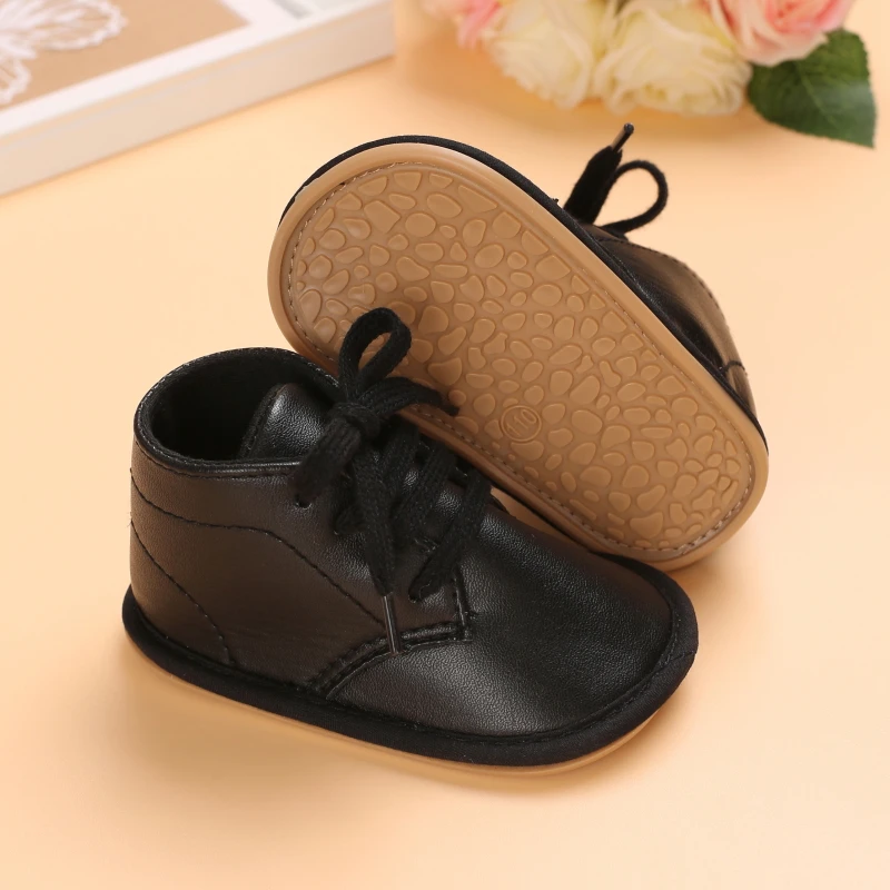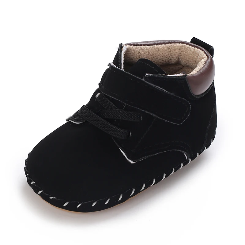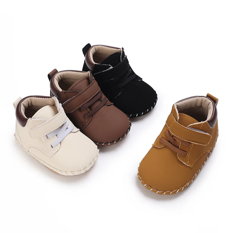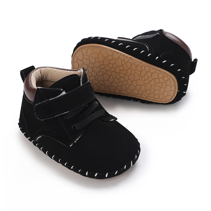 Кожаные туфли для мальчиков и девочек, Нескользящие, разные цвета, средняя подошва, резиновая подошва, Ретро стиль, для новорожденных