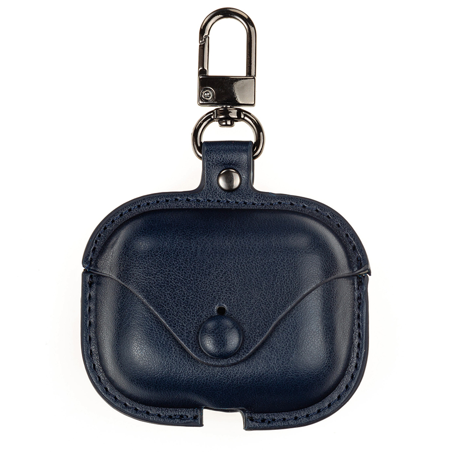 Кожаный чехол для AirPods Pro на кнопке с карабином, темно-синий