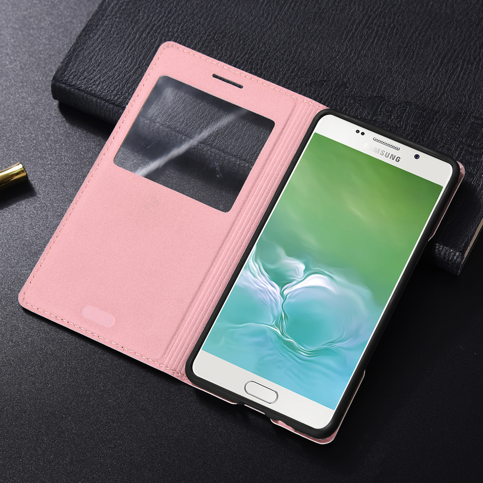 Кожаный чехол-книжка с окошком для Samsung Galaxy A3, A5, A7, цвета в ассортименте
