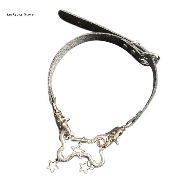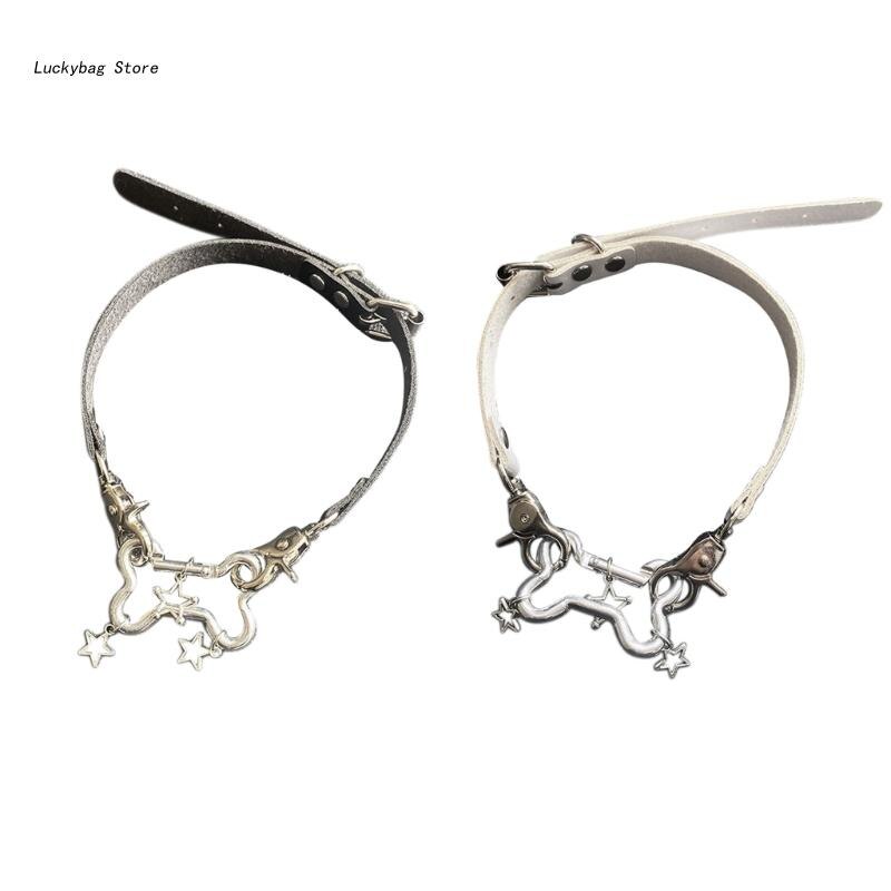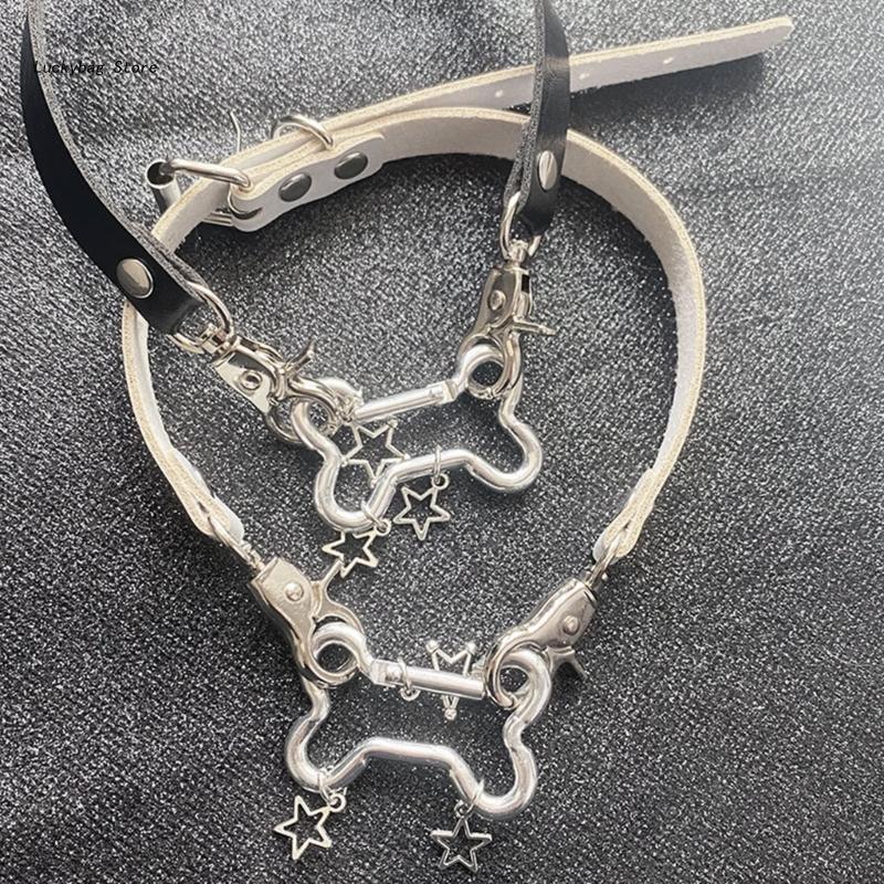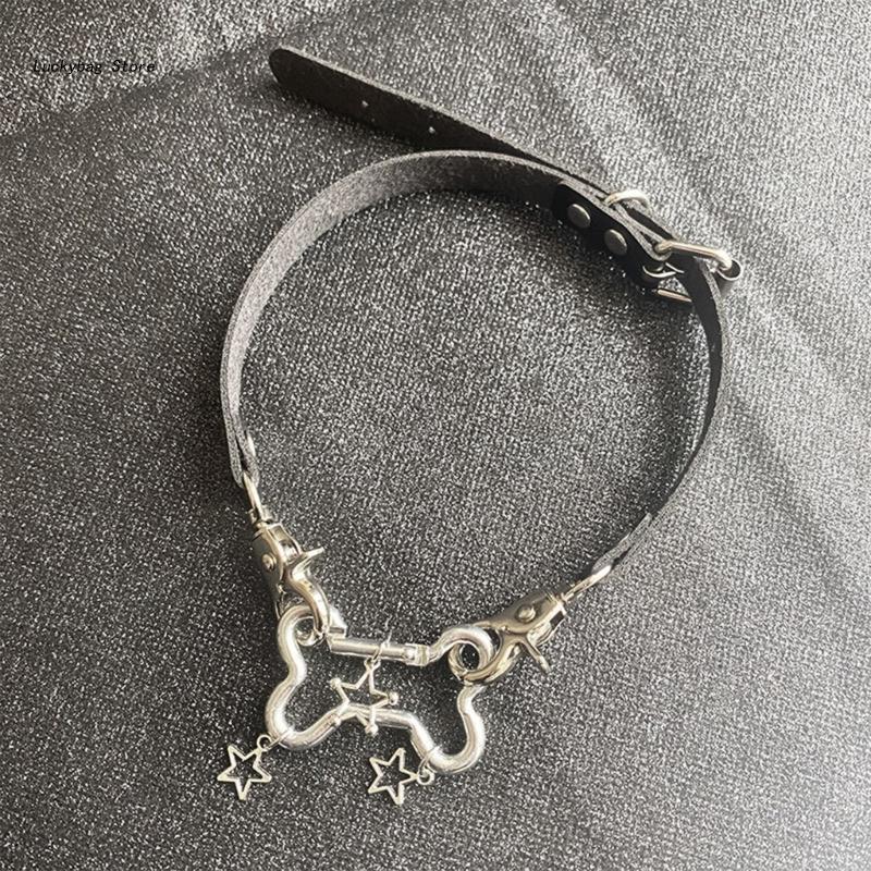 Ожерелье-чокер из кости, кожаное колье, колье-чокер в стиле панк, подвеска в виде звезды, колье-чокер Y2k для женщин, колье с подвеской, цепочка на ключицу, колье в стиле хип-хоп, уникальный и привлекательный, крутой вид.