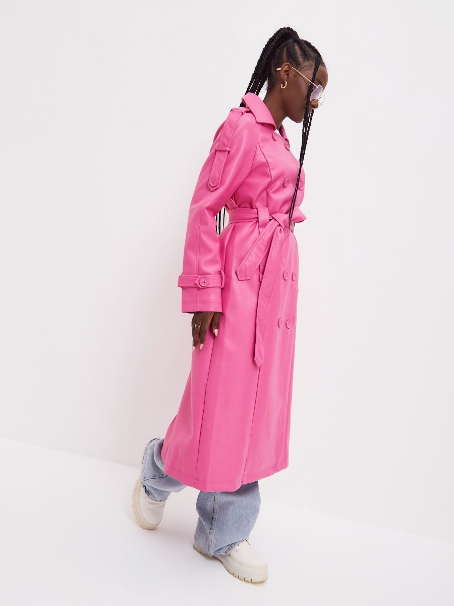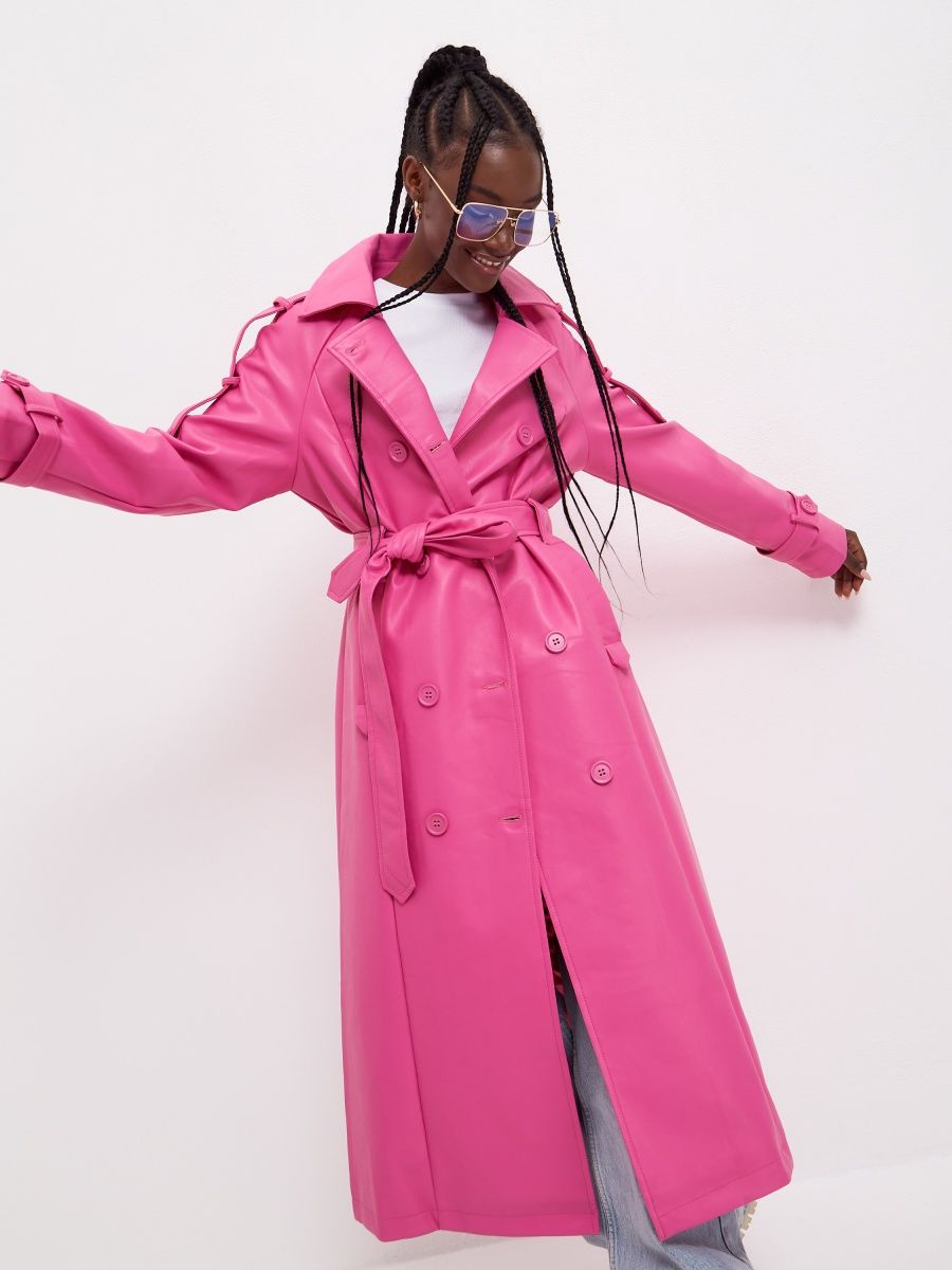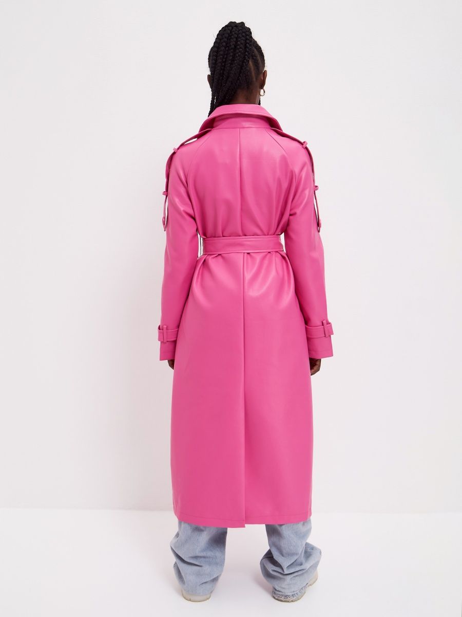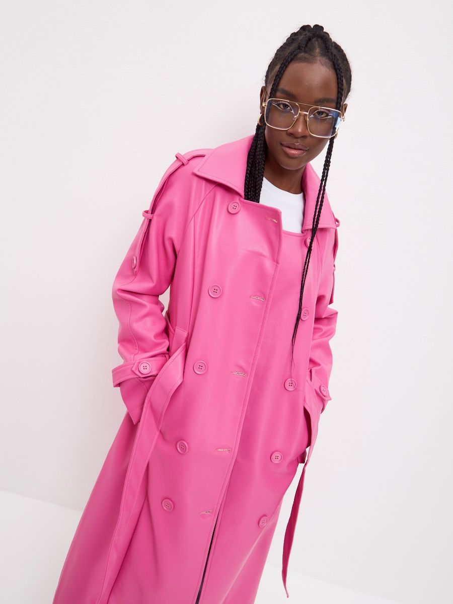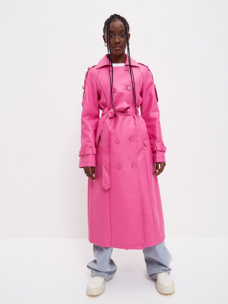 Кожаный плащ длинный тренч пальто осень 2023 барби