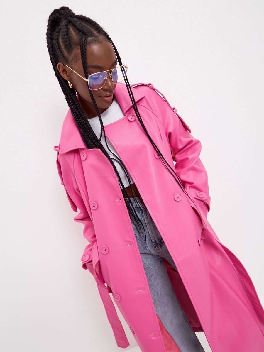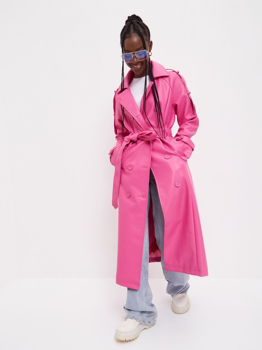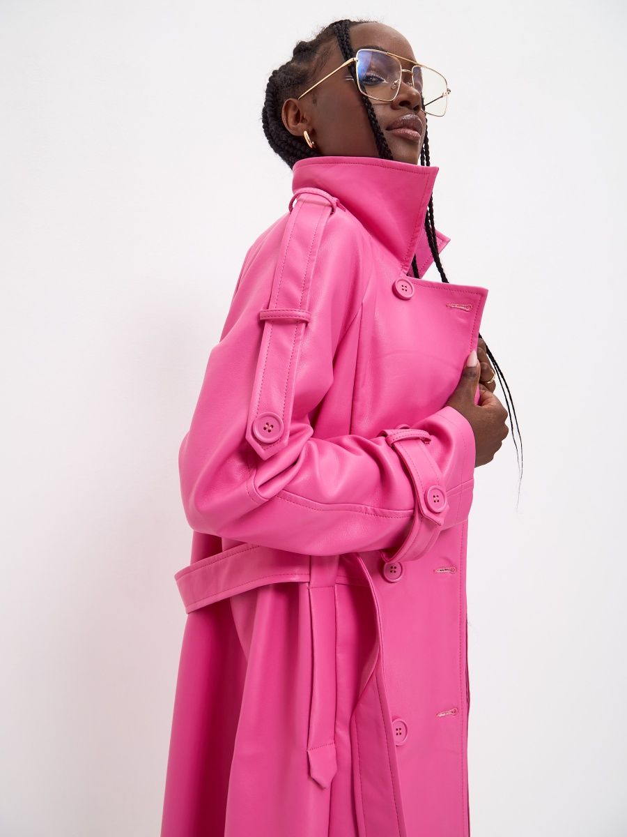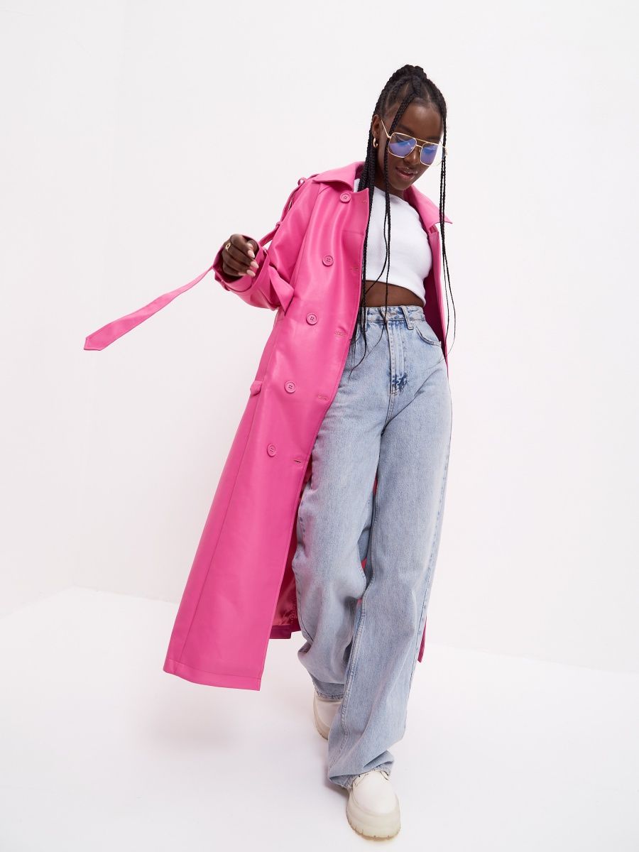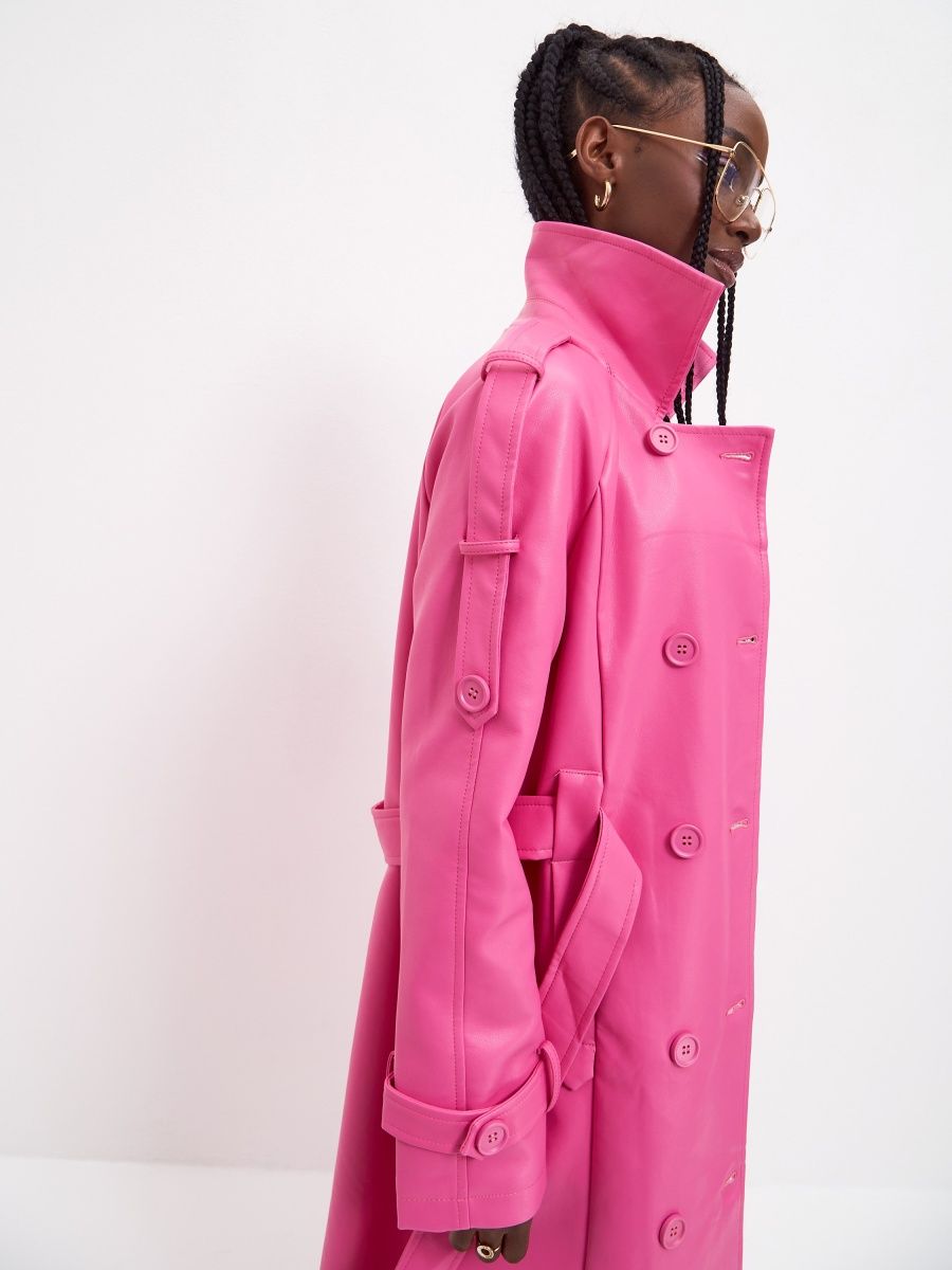 Кожаный плащ длинный тренч пальто осень 2023 барби