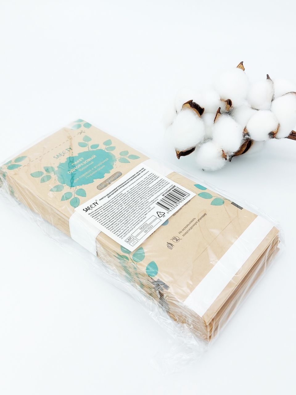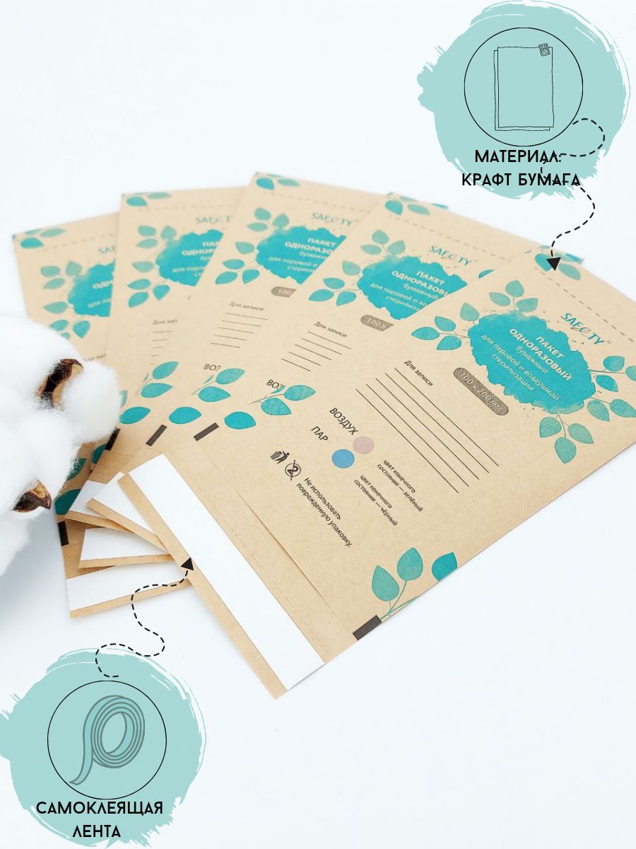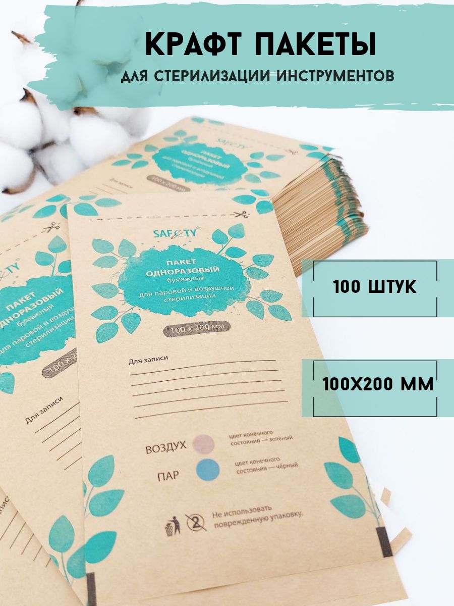 Крафт пакет медицинский для стерилизации инструментов, размер 100x200 мм, Safety, упаковка 100шт.