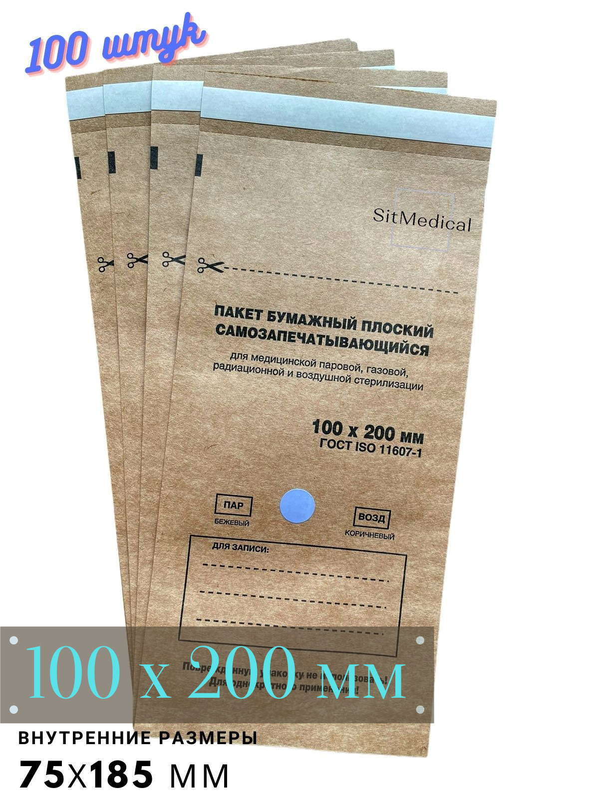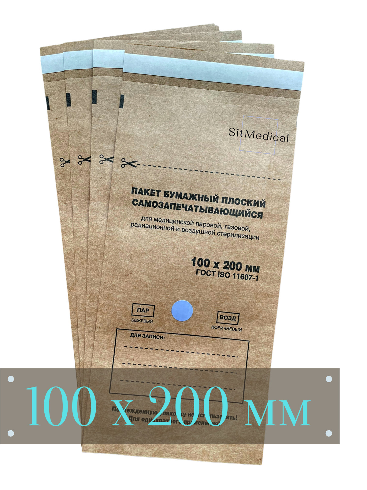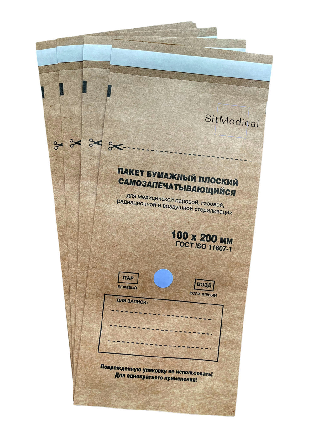 Крафт пакет самоклеящийся для стерилизации воздушной и паровой 100х200 мм 100 шт. SitMedical