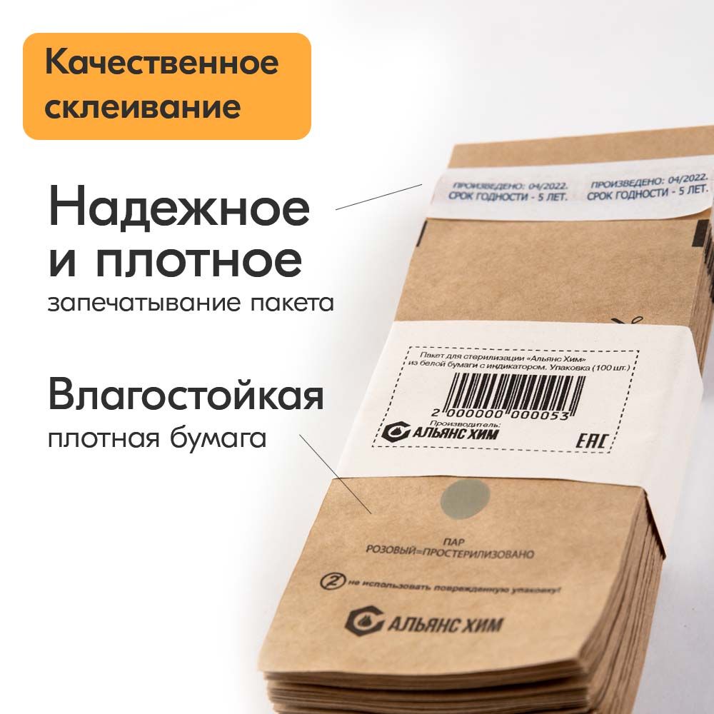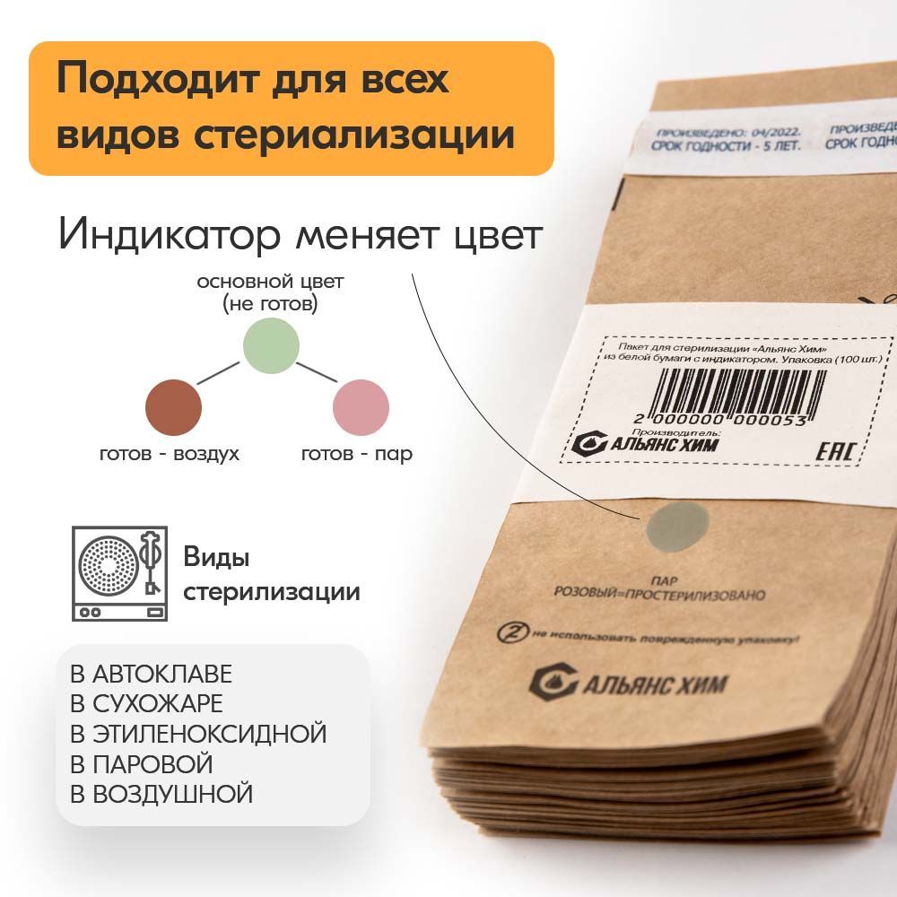 Описание: Текстовое описание изображенияПакеты для стерилизации инструментовКрафт - пакеты считаются лучшей упаковкой для стерилизации стоматологических, медицинских и маникюрных приспособлений. Крафт - бумага очень плотная, устойчивая к разрывам, не боится горячего воздуха и пара. Мы представляем пакеты для стеризации иструментов 100х200, 75х150, 60х100.Текст при отключенной в браузере загрузке изображенийПрочныеПеред использованием всегда проверяй упаковку на целостность. Если где то расклеились швы, есть разрезы, упаковку использовать запрещено. Наши пакеты перед отгрузкой проверяются на повреждения.Текст при отключенной в браузере загрузке изображенийНет запахаВозможно, это неправильно настроенный сухожар, наши пакеты не имеют запахов.Текст при отключенной в браузере загрузке изображенийНе расклеиваютсяПрост в использовании и имеет средние показатели срока сохранения стерильности маникюрных или медицинских инструментов. Не расклеиваются, если инструкция была соблюдена!Текст при отключенной в браузере загрузке изображенийИндикаторыЧтобы проверить, правильно ли прошла стерилизация, используют индикаторы. Это полоски со специальным покрытием, которое меняет цвет при высокой температуре. Важно и время обработки — индикаторы не сработают, если стерилизацию закончили слишком рано.Текстовое описание изображенияТекстовое описание изображения