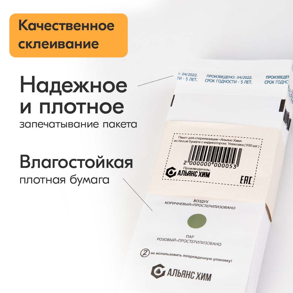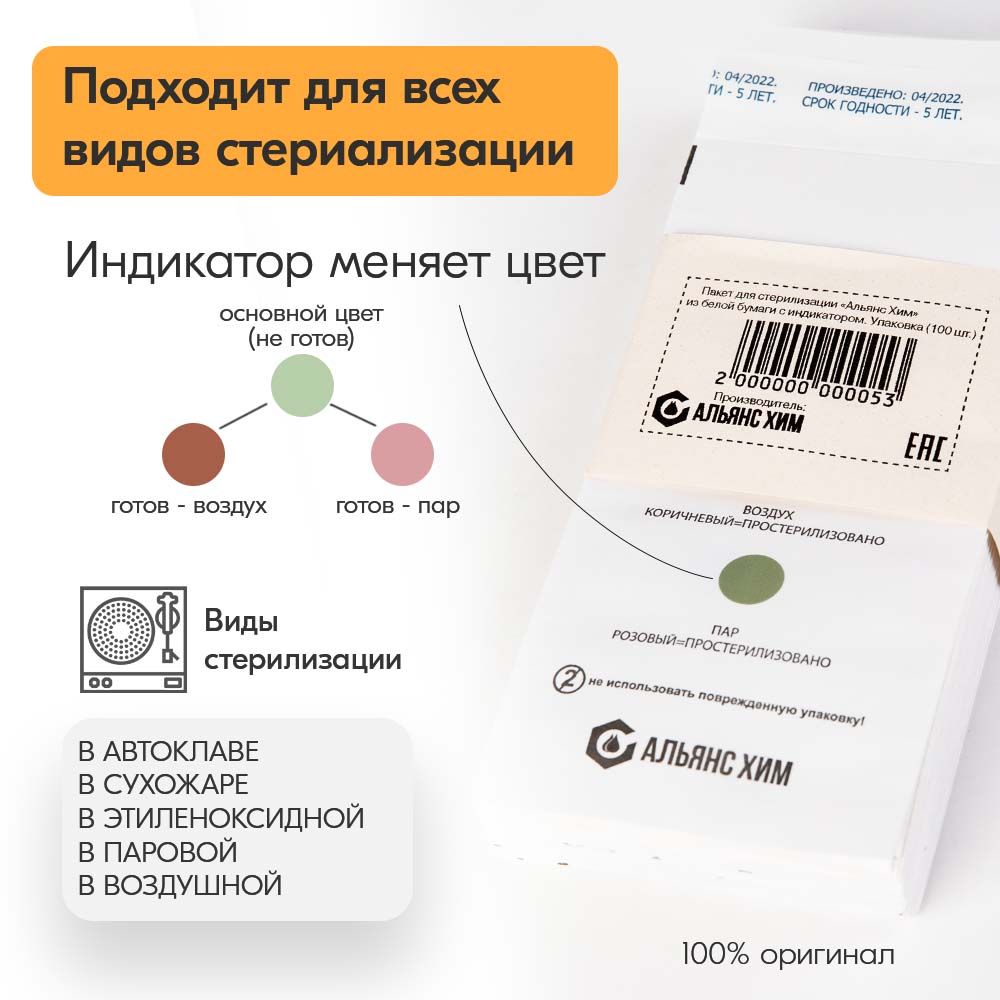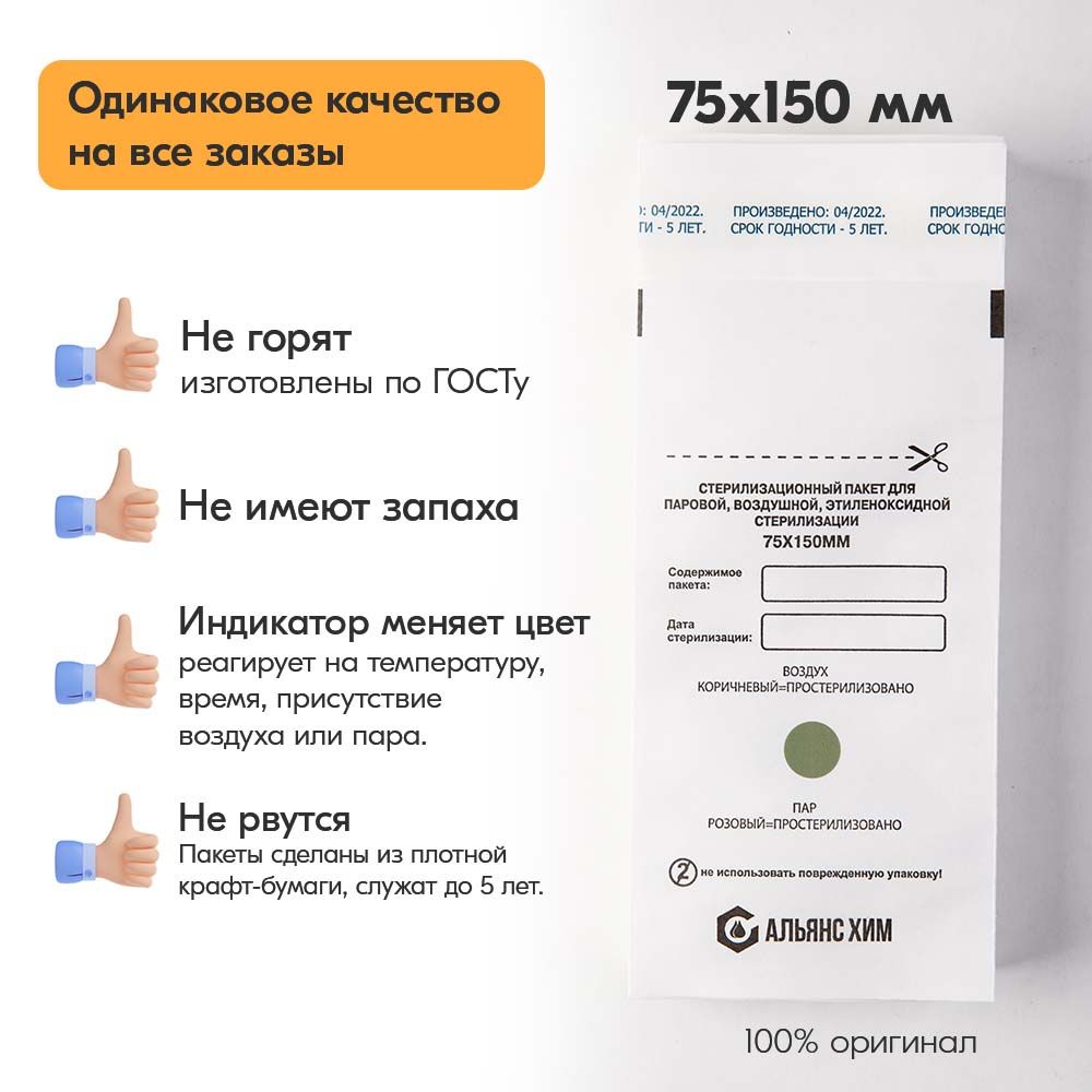 Описание: Текстовое описание изображенияПакеты для стерилизации инструментовКрафт - пакеты считаются лучшей упаковкой для стерилизации стоматологических, медицинских и маникюрных приспособлений. Крафт - бумага очень плотная, устойчивая к разрывам, не боится горячего воздуха и пара. Мы представляем пакеты для стеризации иструментов 100х200, 75х150, 60х100.Текст при отключенной в браузере загрузке изображенийПрочныеПеред использованием всегда проверяй упаковку на целостность. Если где то расклеились швы, есть разрезы, упаковку использовать запрещено. Наши пакеты перед отгрузкой проверяются на повреждения.Текст при отключенной в браузере загрузке изображенийНет запахаВозможно, это неправильно настроенный сухожар, наши пакеты не имеют запахов.Текст при отключенной в браузере загрузке изображенийНе расклеиваютсяПрост в использовании и имеет средние показатели срока сохранения стерильности маникюрных или медицинских инструментов. Не расклеиваются, если инструкция была соблюдена!Текст при отключенной в браузере загрузке изображенийИндикаторыЧтобы проверить, правильно ли прошла стерилизация, используют индикаторы. Это полоски со специальным покрытием, которое меняет цвет при высокой температуре. Важно и время обработки — индикаторы не сработают, если стерилизацию закончили слишком рано.Текстовое описание изображенияТекстовое описание изображения