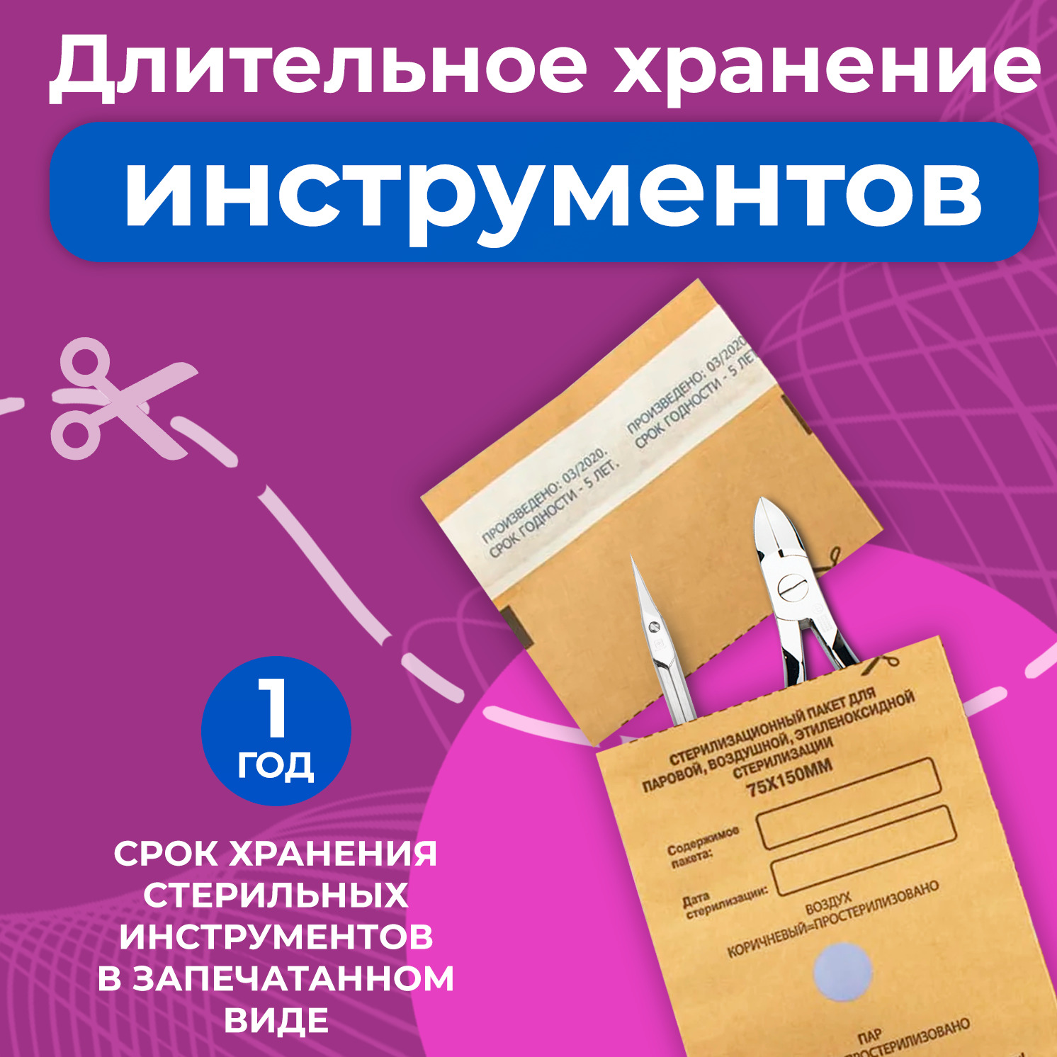 Крафт пакеты для стерилизации медицинских и маникюрных инструментов, 75х150 мм, 1000 шт. в упаковке, наборе. Крафтовые пакеты для маникюра и педикюра размером 7,5х10 см с индикатором. Расходники.
