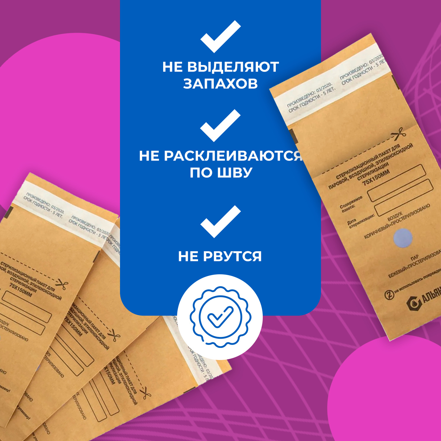 Описание: Текст при отключенной в браузере загрузке изображенийКрафт - пакеты считаются лучшей упаковкой для стерилизацииКрафт - пакеты считаются лучшей упаковкой для стерилизации стоматологических, медицинских и маникюрных приспособлений. Крафт - бумага очень плотная, устойчивая к разрывам, не боится горячего воздуха и пара. Одноразовые мешки размером 7,5 х 15 см (75х150 мм), при изготовлении которых применялась крафтовая бумага, могут смело использоваться для обработки в микроволновой печи, духовке. На пакетах предусмотрена самоклеющаяся застежка, поэтому инструменты в ходе обжарки и дезинфекции находятся под надежным замком, а также индикатор, меняющий цвет после стерилизации.Текст при отключенной в браузере загрузке изображенийИдеальное решениеВ парикмахерских, косметологических кабинетах и салонах красоты крафтовые герметичные пакетики применяют для стерилизации расходных материалов (расходники) и инструментов для ухода, маникюра и педикюра - маникюрных и педикюрных ножничек, кусачек, пилок для ногтей, а также насадок и фрезы для маникюрного аппарата. Запечатывание индивидуальных инструментов и аксессуаров перед косметической процедурой продемонстрирует добросовестность мастера и поможет сберечь здоровье его клиентов. В наборе 1000 штук пакетов для стерилизации и хранения инструментов. Пакеты будут полезны не только мастерам в салоне, но и женщинам, работающим в бьюти - сфере в домашних условиях. Пожалуйста, замените этот текст Вашим собственным. Просто кликните по тексту, чтобы добавить свой текст. Настройте стиль текста в левой колонке.Текст при отключенной в браузере загрузке изображенийИндикаторная полоса реагирует на температуруИндикаторная полоса реагирует на температуру, время и присутствие воздуха и пара. Хранить стерилизованные инструменты после очищения в таком запечатанном пакете можно до 1 года. Для этого их нужно плотно заклеивать. При их использовании можно поместить пинцеты, ножницы зажимы парикмахера, косметические инструменты, лотки и емкости с ручками для педикюра как в автоклав, так и сухожар, кварцевый и ультразвуковой стерилизатор, бытовой духовой шкаф, при этом предстерилизационная обработка не требуется. Это идеальная мягкая стерилизационная упаковка, которая может использоваться даже в микроволновке. Инструменты в бумажных пакетах можно подвергать следующим видам стерилизации: сухожаровой, паровой, воздушной, этиленоксидной и стерилизации в автоклаве. Для простой и эффективной дезинфекции медицинских, косметических и маникюрных приспособлений обязательно пригодятся крафт - пакеты с надежным замком. Сверхпрочные универсальные самоклеющиеся плоские пакетики широко используются для стерилизации инструментов в работе косметолога, индустрии красоты и в сфере медицины - в хирургии и стоматологии для обработки и стерилизации хирургических и стоматологических инструментов.