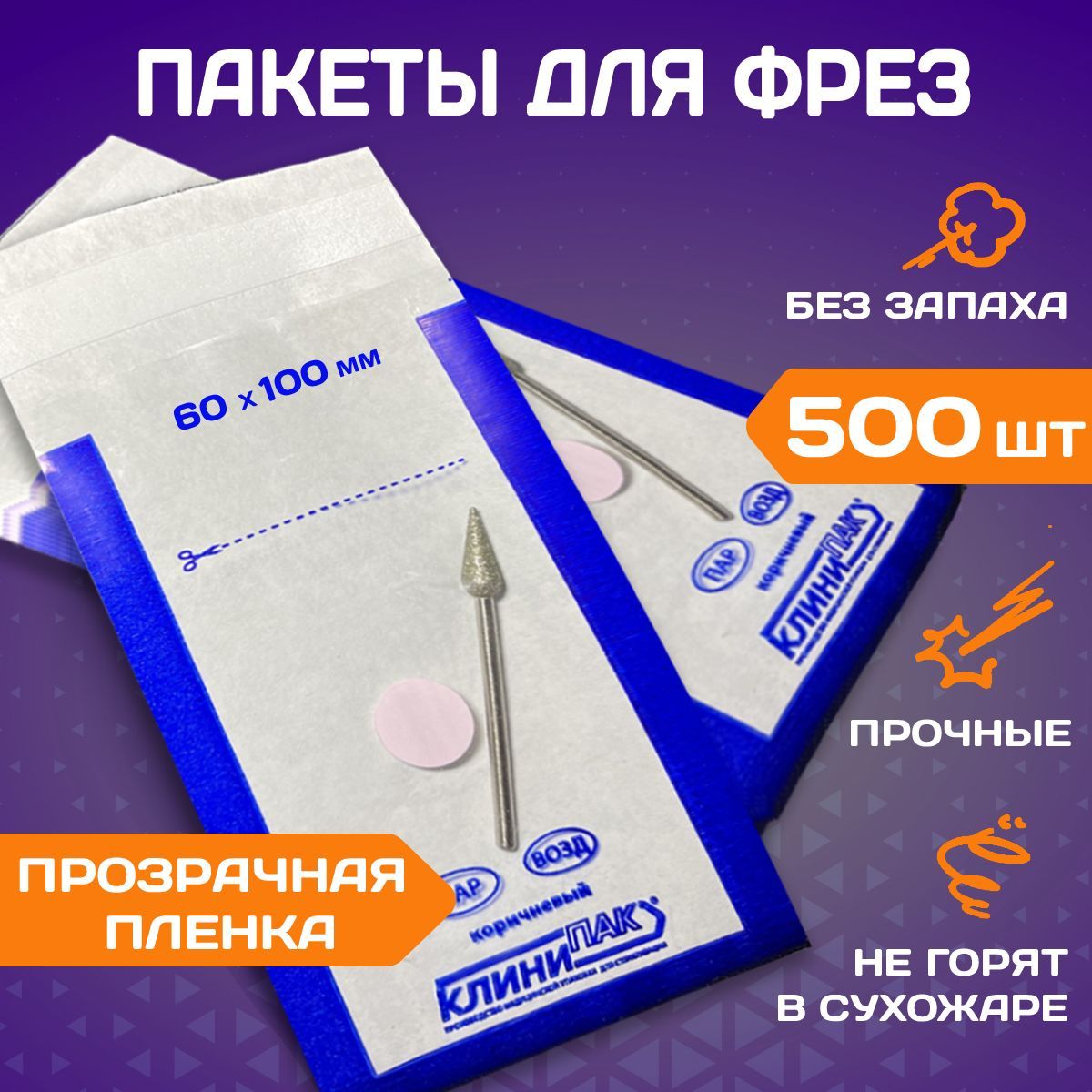 Описание: Крафт пакеты КОМБИ 60х100 мм набор 500 шт. белые с пленкой бумажные пакеты для стерилизации инструментов КЛИНИПАККомбинированные белые крафт пакеты КлиниПак для стерилизации маленьких инструментов для маникюра, фрез, пинцетов, насадок, боров. Размер пакетов 60 мм в ширину на 100 мм в длину (6 на 10 см) с учетом швов.
