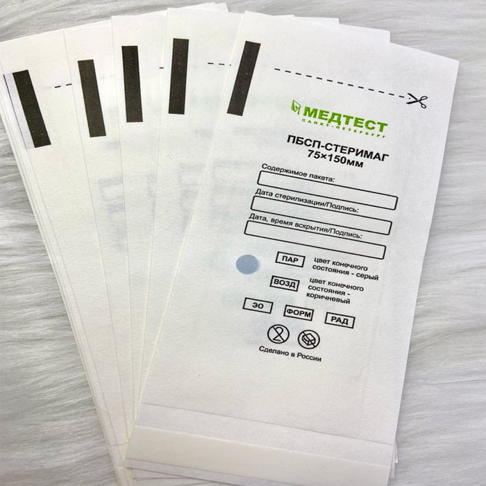 На внешней стороне пакета нанесён индикатор, позволяющий отличить простерилизованные изделия от нестерилизованных.
