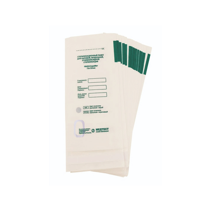 Крафт-пакеты 'МЕДТЕСТ' 75*150 мм. белые 20 шт
