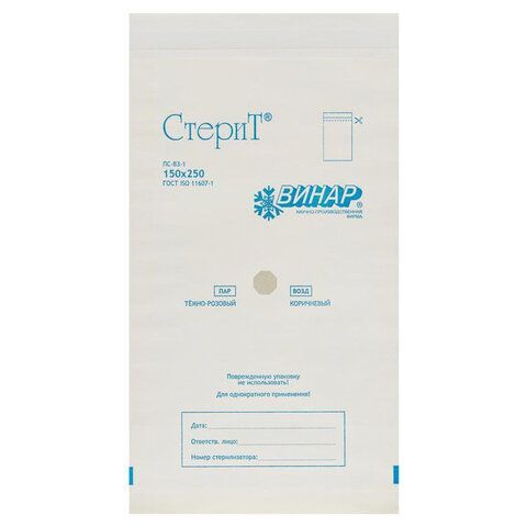 Крафт пакеты влагопрочные 150х250 СтериТ ( Винар) белый №100