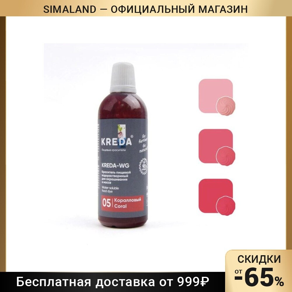 Краситель пищевой Kreda-WG 05 водорастворимый коралловый, 100 г 7584992