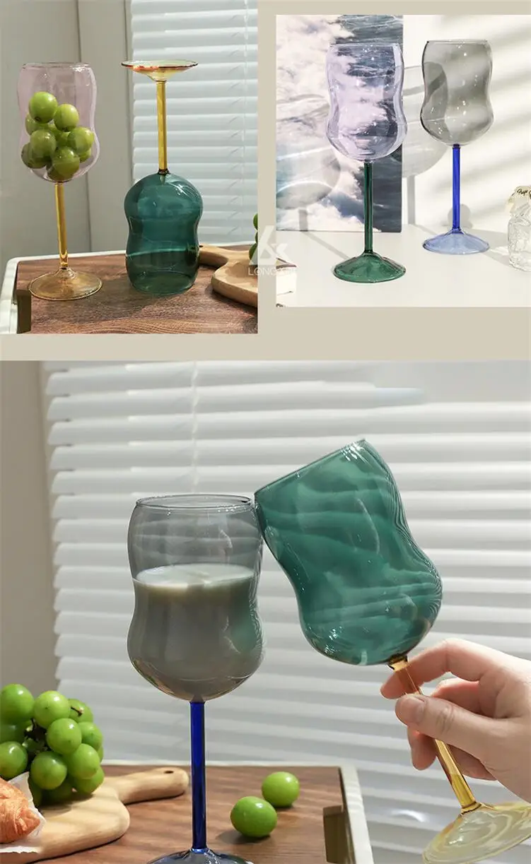 Красивые цветные стеклянные бокалы стеклянная кружка выдувная Асимметричная волнистая кружка для молока Высокая боросиликатная устойчивая к коктейлям красная винная бокал кружка стеклянная кружка