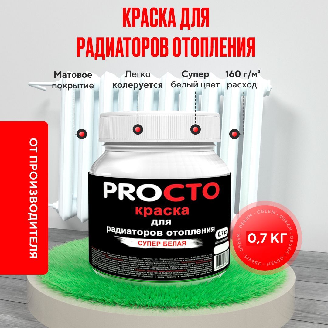 Краска для радиаторов отопления, батарей и труб белая матовая без запаха быстро сохнущая акриловая эмаль 0.7 кг PROСТО