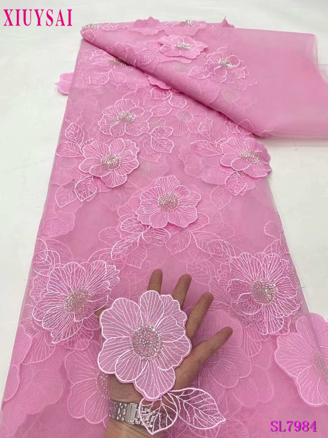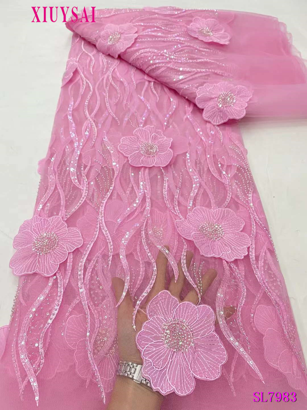 Красная африканская кружевная ткань с блестками для жениха 5 ярдов 2024 высококачественная ткань из фатина для шитья