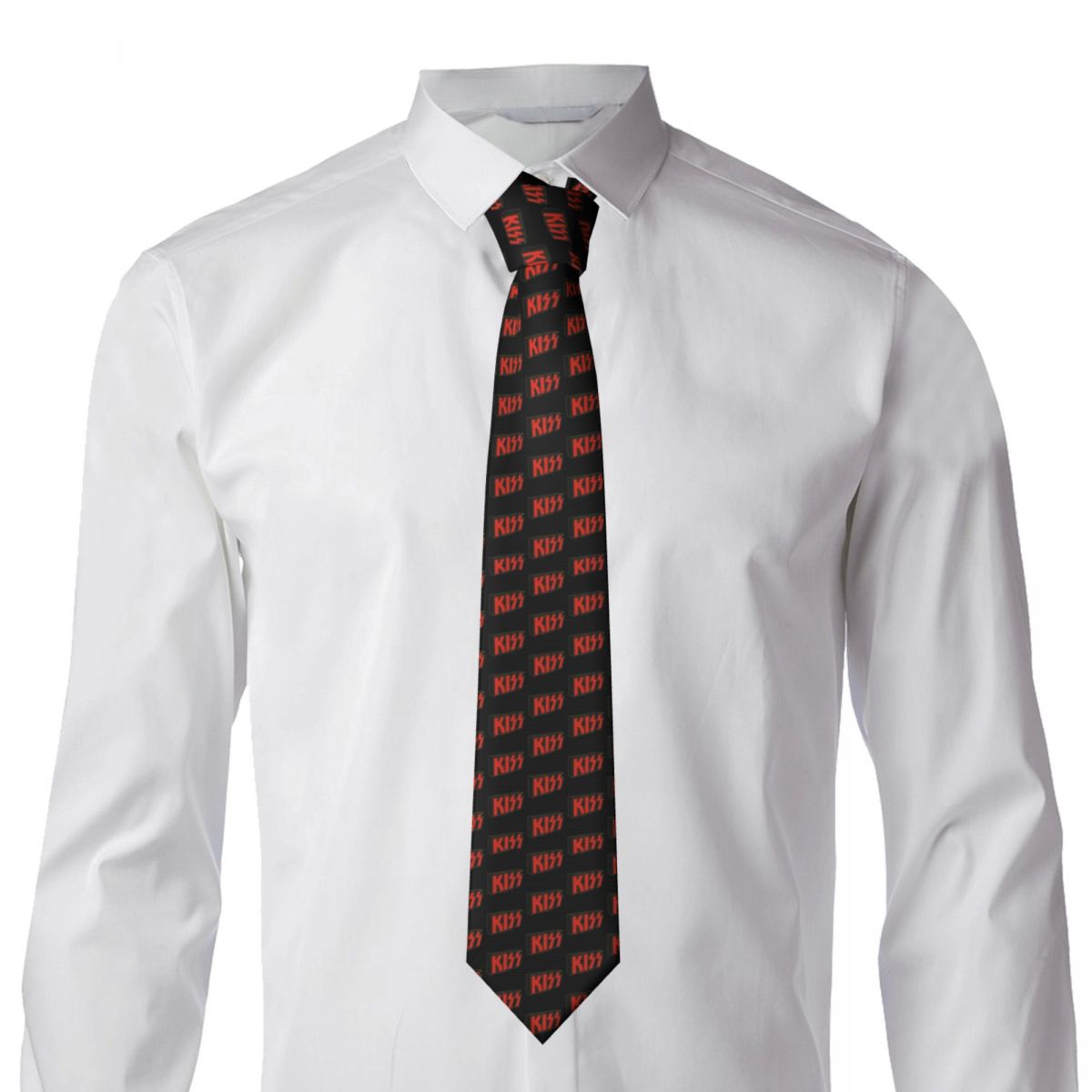 Красный галстук с логотипом Kiss Band, винтажные галстуки из полиэстера и шелка, аксессуары, Мужская блузка, галстук