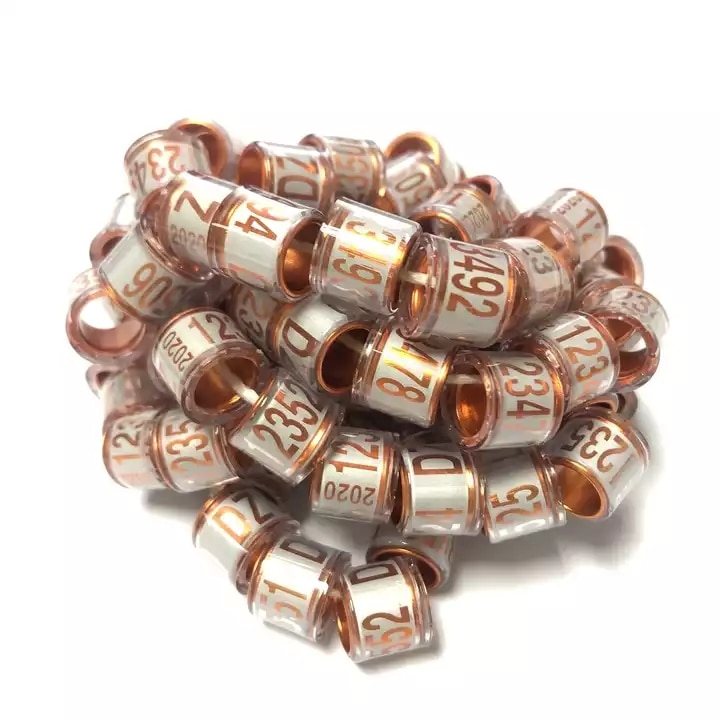 Красочные внутренние кольца в виде голубей, индивидуальное кольцо в виде голубей, 2023 FCC 001-100 с белым зеркальным золотом