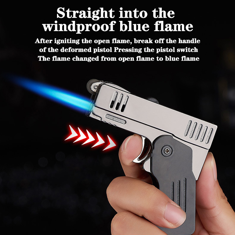 Креативная Складная зажигалка, Двухрежимная переключатель, ветрозащитная зажигалка, шлифовальный круг, модель пистолета с открытым пламенем, зафонарь Галка, подарок другу