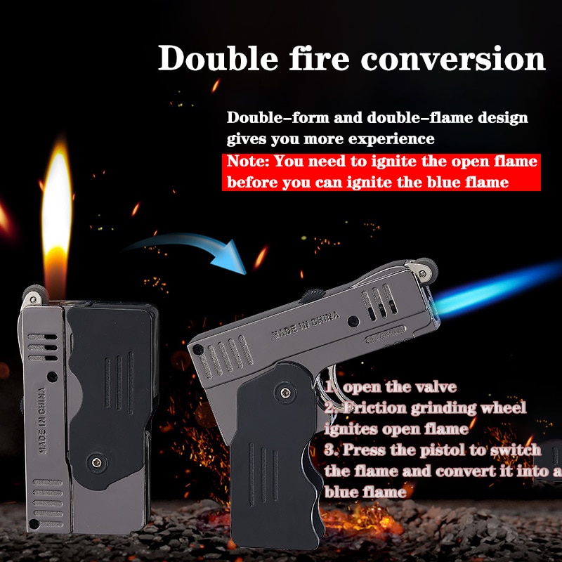 Креативный складной двухрежимный переключатель, ветрозащитная зажигалка, шлифовальный круг, открытое пламя, пистолет, модель, фонарь, зажигалка, подарок другу