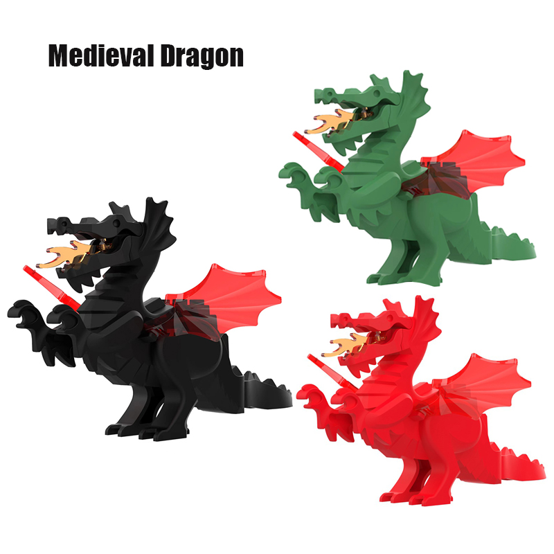 Креативные экшн-фигурки MOC в средневековом стиле, модель дракона, строительные блоки, коллекция кубиков «сделай сам», веселые игрушки для детей, подарки