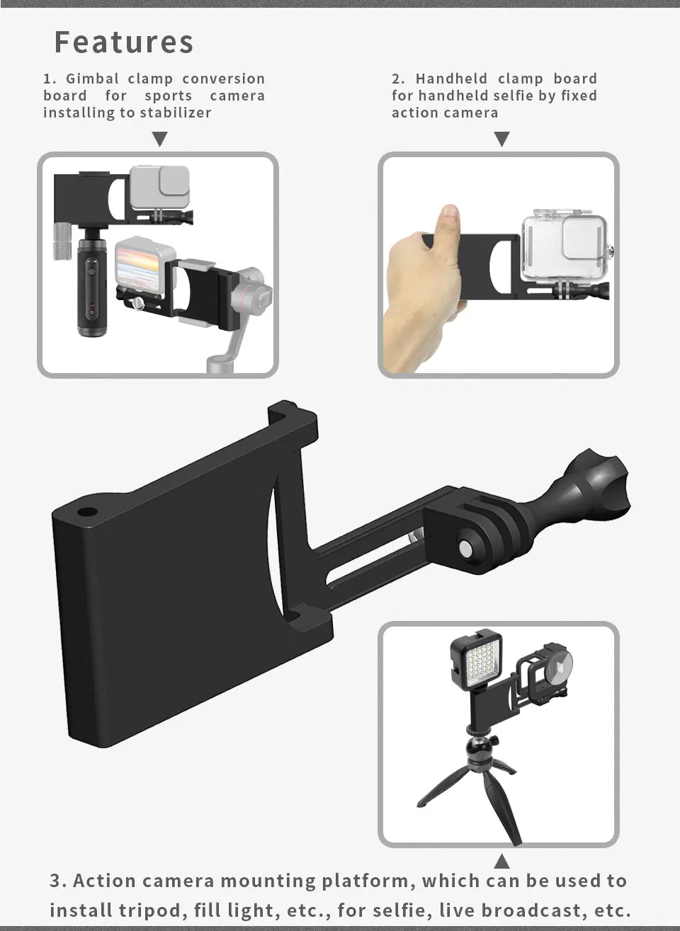 3. Монтажная платформа для камеры движения, которая может использоваться для установки штатива, заполняющего светильник и т. д., selfie, прямой трансляции и т. д.