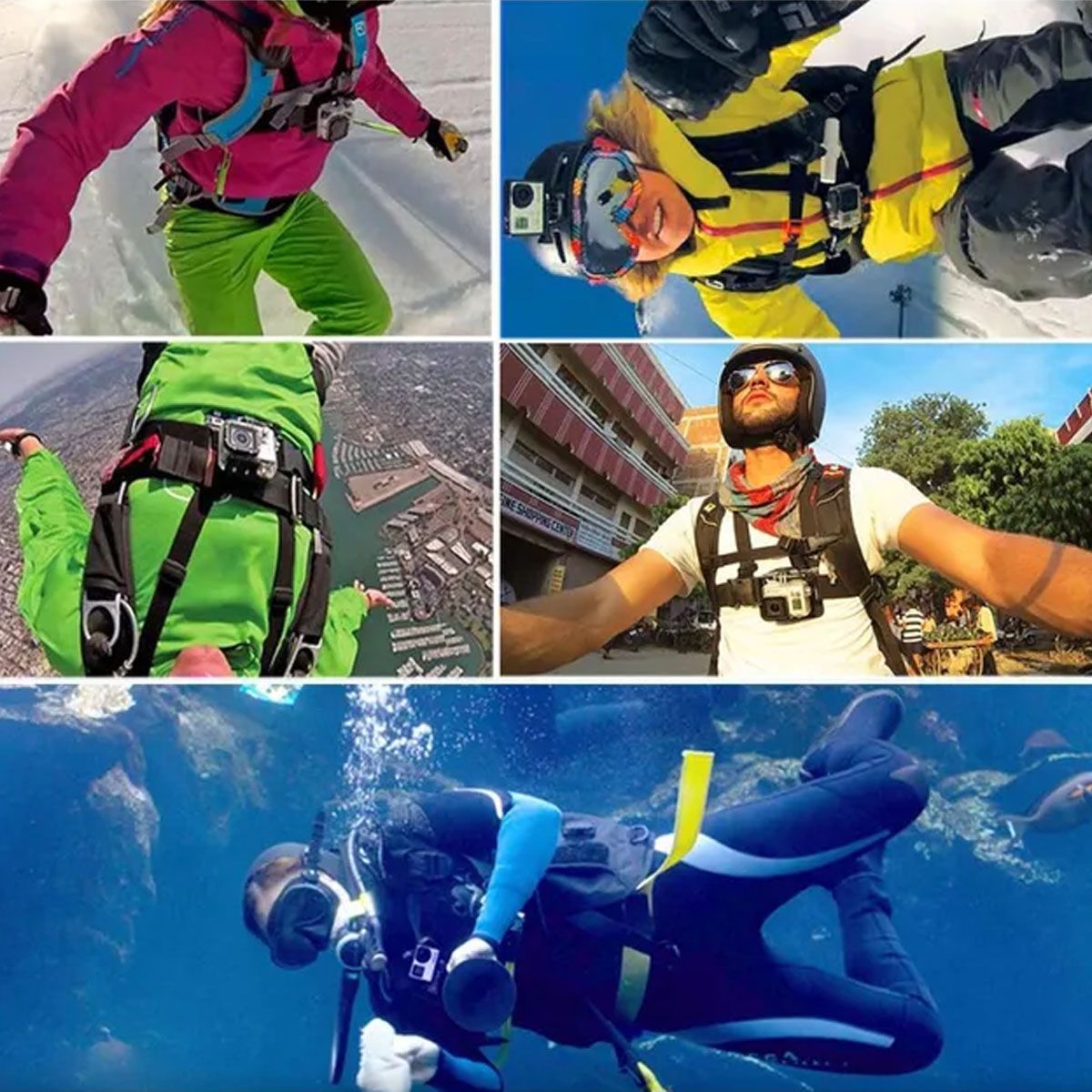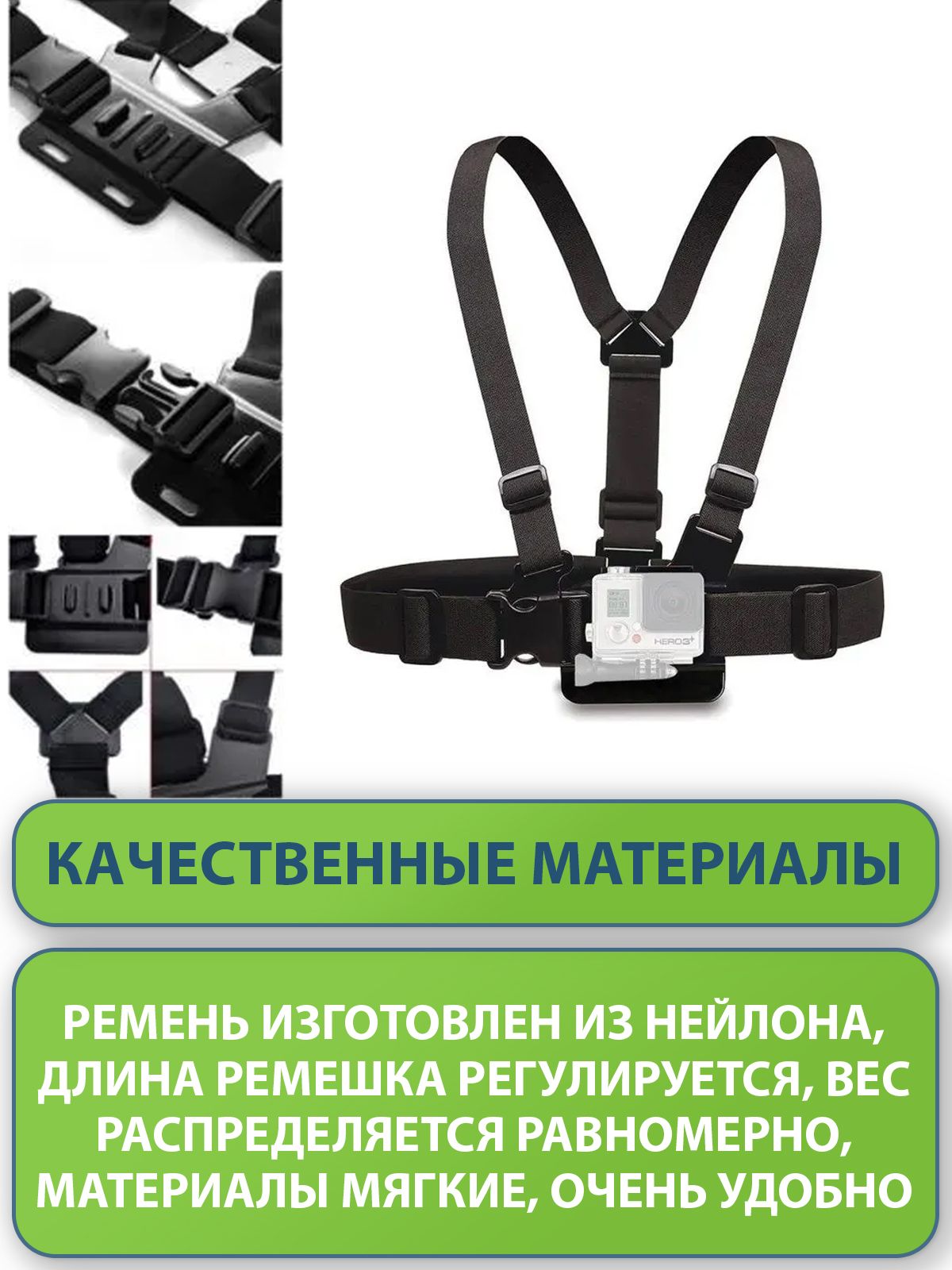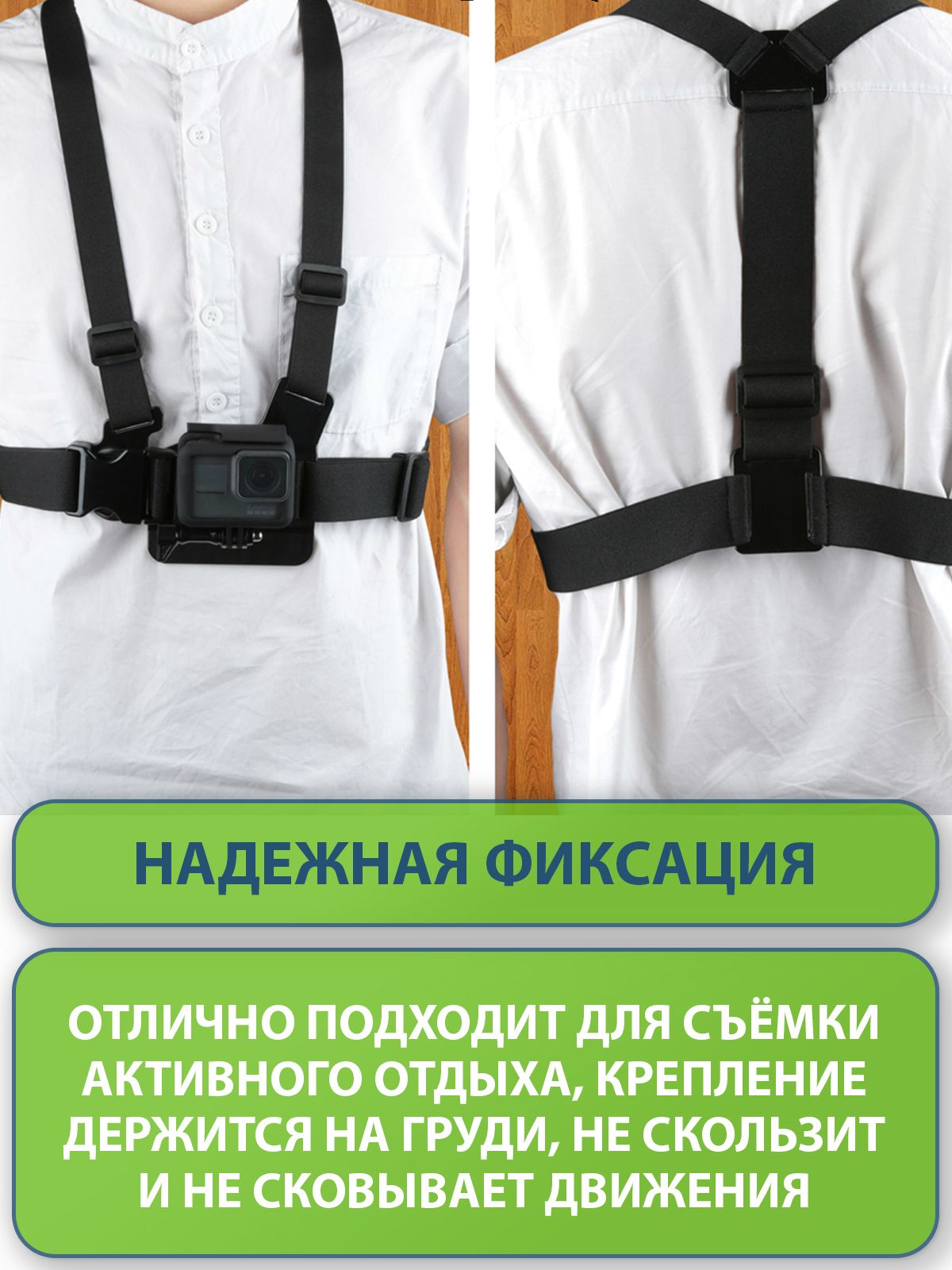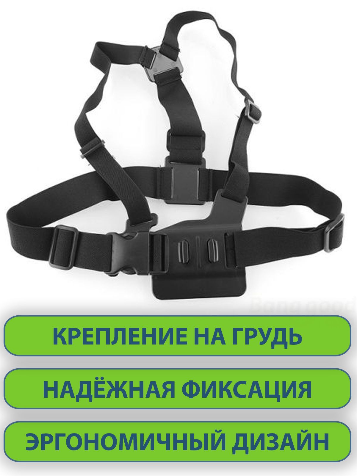 Описание: Крепление на грудьНагрудное крепление позволяет закрепить камеру на груди, освободив руки для других занятий. Возможность регулировки ремней позволяет адаптировать аксессуар к анатомическим особенностям конкретного человека. Качественные материалыРемень изготовлен из нейлона, длина ремешка регулируется, вес распределяется равномерно, материалы мягкие, что очень удобно.Надёжная фиксацияКрепление очень удобное и крепкое. Его легко одевать и снимать, оно не занимает много места, поэтому вы сможете его взять с собой в любое путешествие.Для лучших кадровКрепление на грудь освобождает руки и позволяет вам наслаждаться  активным отдыхом и спортом.