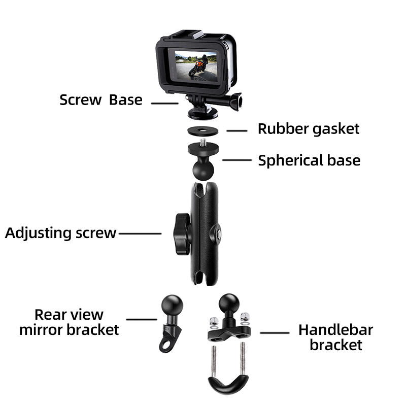 Стандартный винт 1/4, подходит для большинства экшн-камер и аксессуаров. Например: серия GoPro Hero SJCAM серии AKASO серии YI и большинство других спортивных камер.