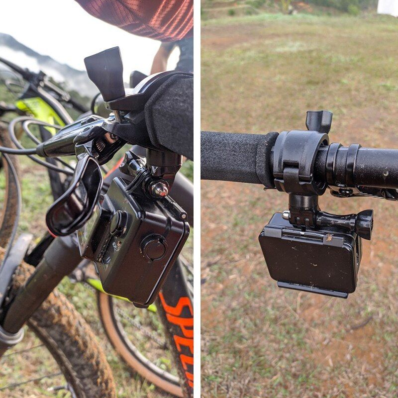 ОсобенностиШарнирная головка позволяет наклонять и поворачивать камеру во все стороны. В месте контакта с рулём есть резиновая вставка. Позволяет закрепить камеру на стандартный разъем GoPro или на штативную резьбу 1/4 дюйма. Подходит для всех моделей GoPro и других аналогичных камер.Комплектация- Крепление