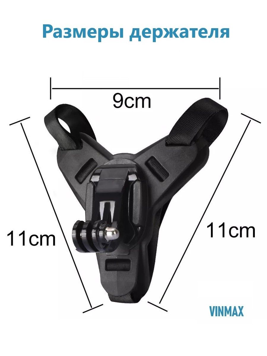 Для крепления экшн-камеры дополнительно потребуется фиксатор (держатель), по размерам подходящий под вашу камеру.