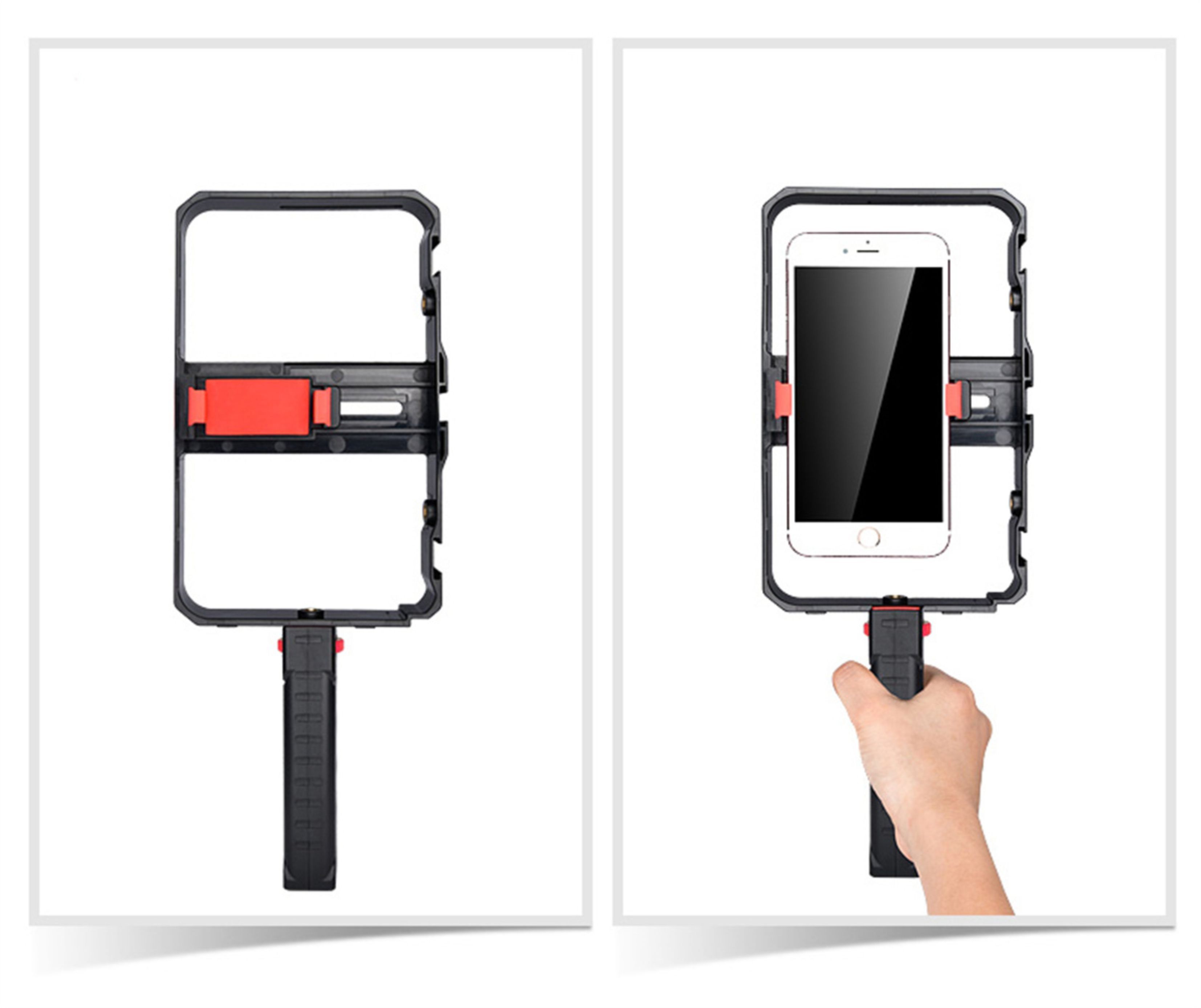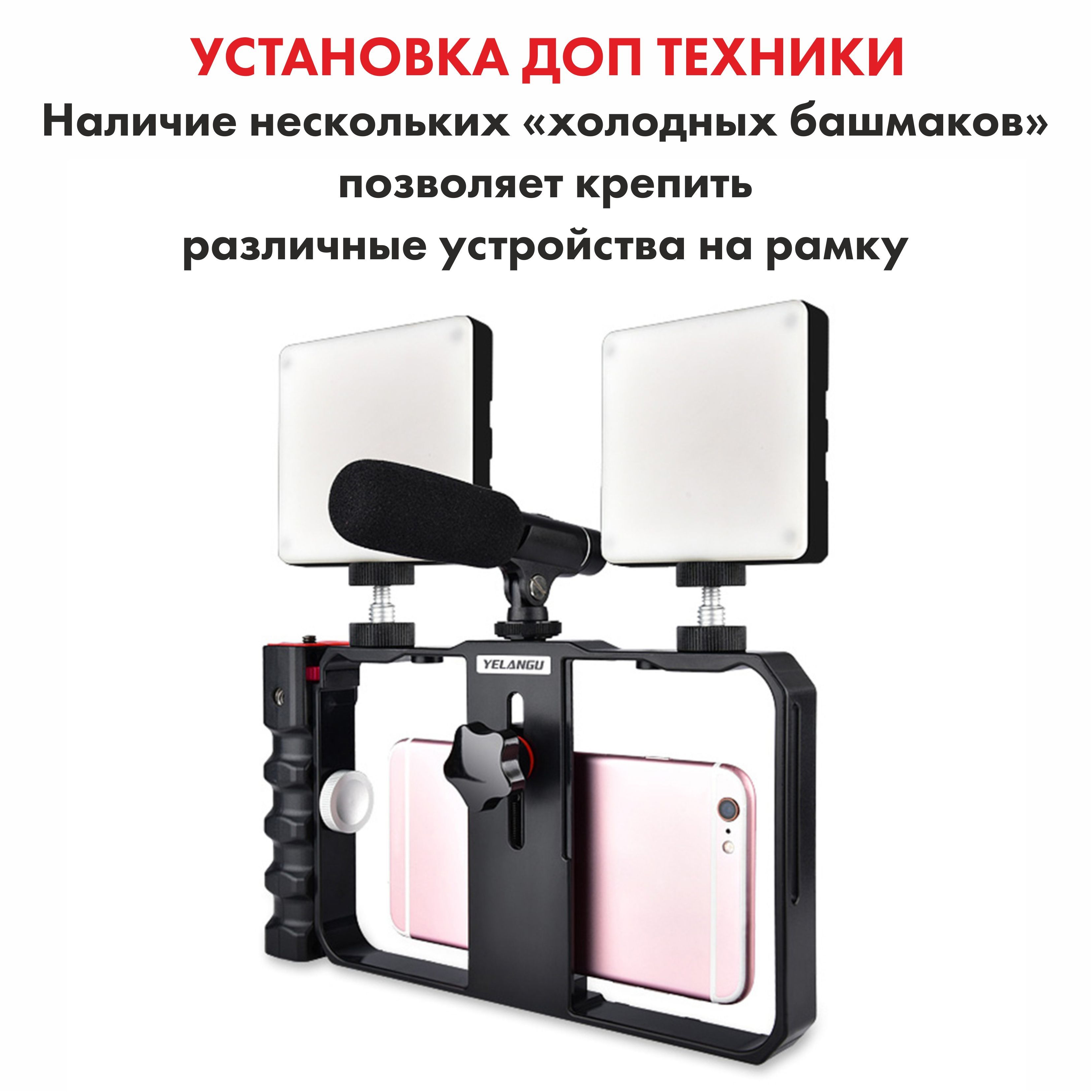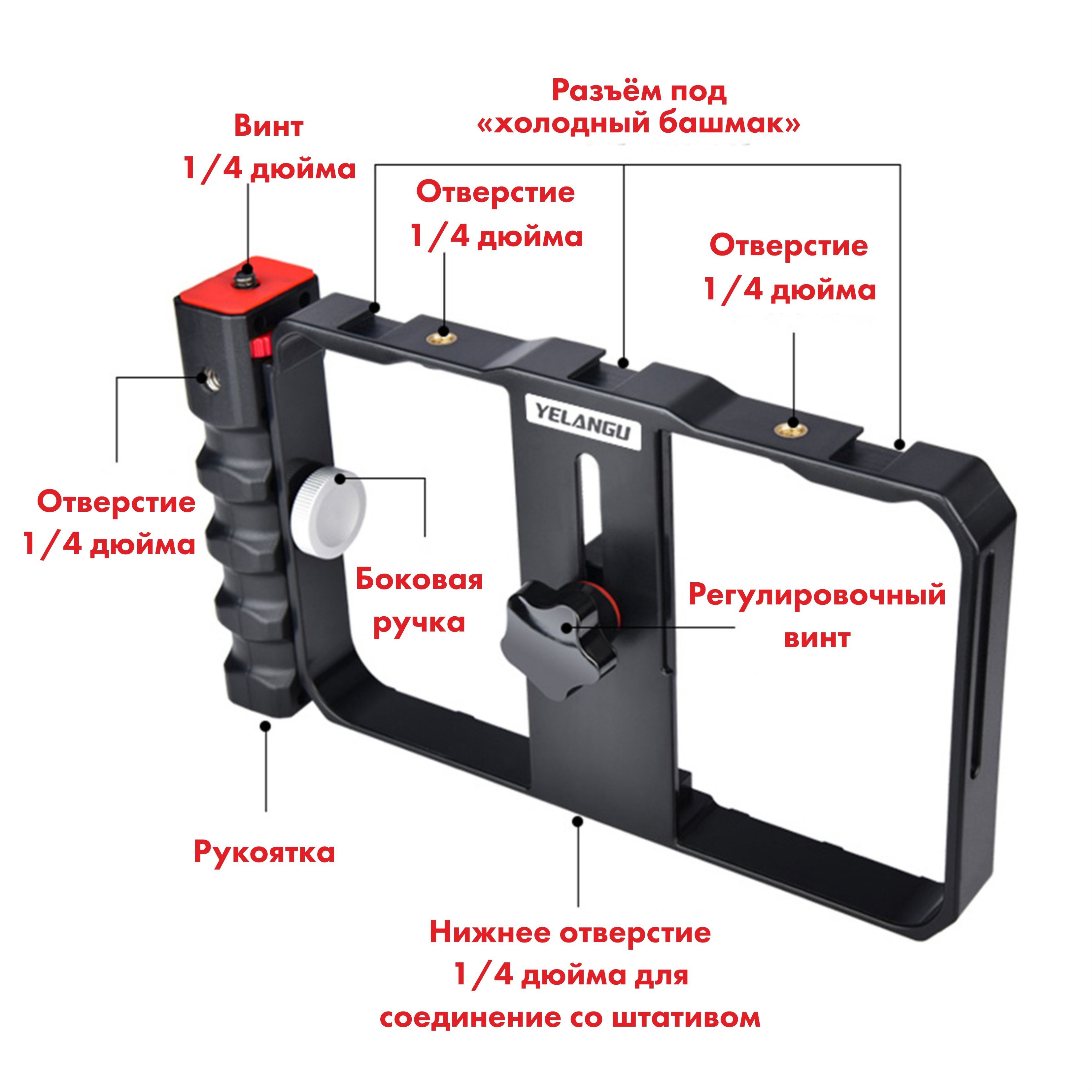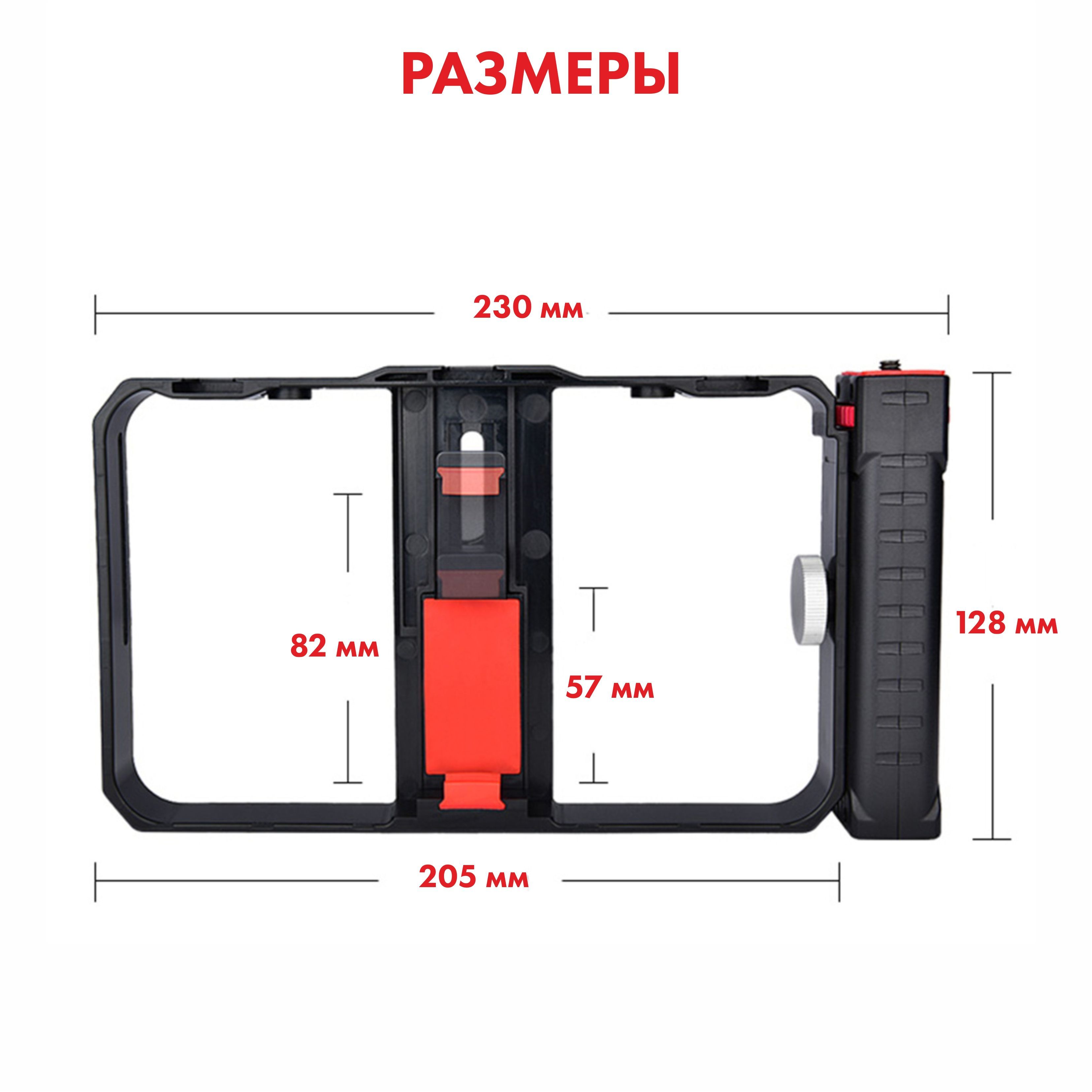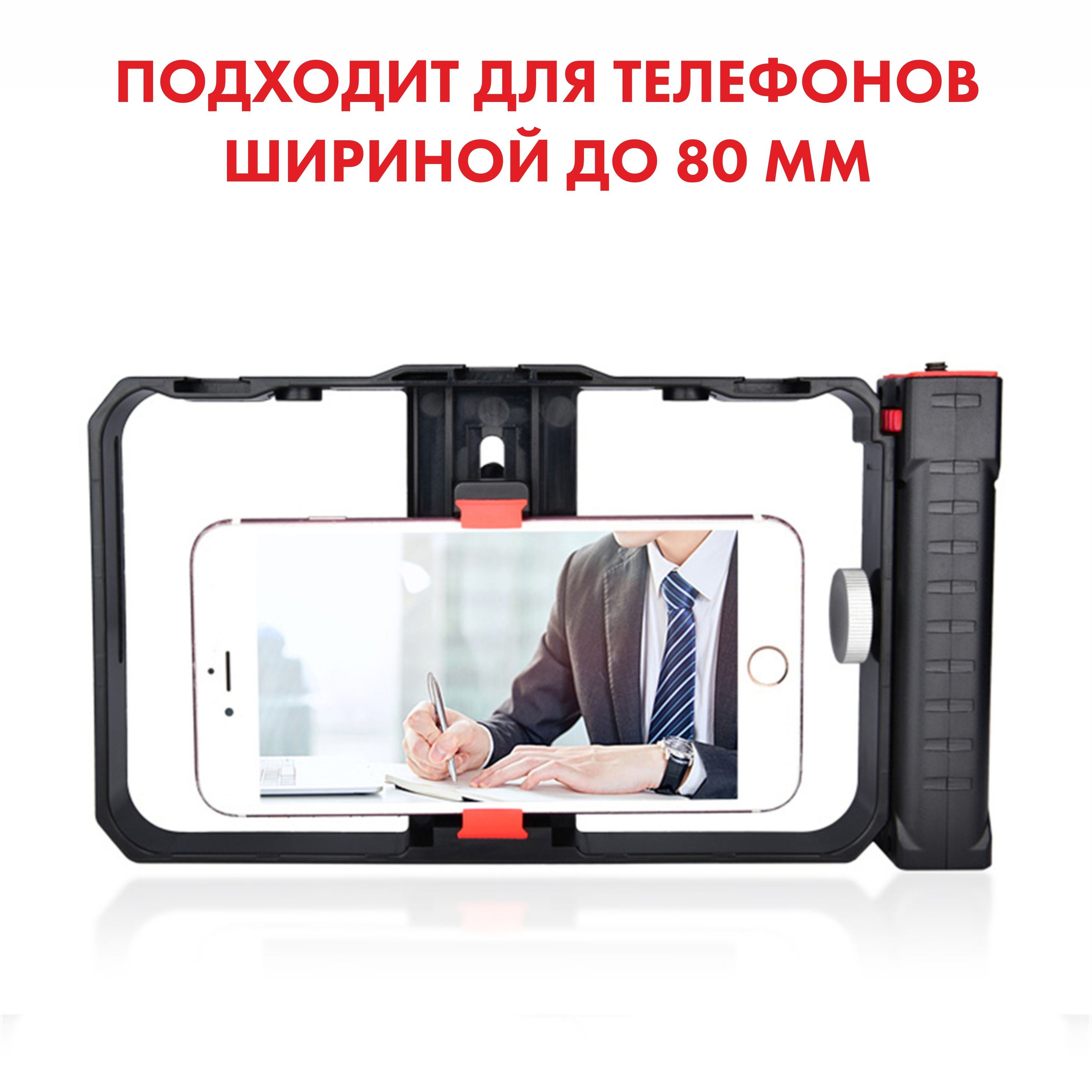 Обеспечивает плавную съемку без лишних вибрацийРамка-держатель для мобильного телефонаНезаменимый аксессуар, предназначенный для комфортной и стабильной съемки! Наша клетка идеально подходит для работы с любым смартфоном шириной от 55 до 86 мм, позволяя вам в полной мере раскрыть свой творческий потенциал.Оснащенный четырьмя разъемами с резьбой 1/4 дюйма, этот держатель обеспечивает невероятную гибкость в использовании аксессуаров для съемки. Вы можете одновременно закрепить микрофон, вспышку и другие дополнительные аксессуары и установить эту конструкцию на универсальный напольный штатив, чтобы создать еще более профессиональные и качественные фото и видео.Благодаря возможности крепления телефона в этом держателе на монопод трипод или штатив, клетка обеспечивает стабильность при съемке, что особенно полезно при создании видео или работы в условиях низкого освещения. Теперь ваш штатиф трипод для телефона, фотоаппарата или камеры может быть идеальным аксессуаром, помогающим вам получить снимки высокого качества без каких-либо неудобств.С этой клеткой вы можете смело экспериментировать с различными углами съемки. Вам доступны как горизонтальное, так и вертикальное положение телефона, а если еще ваш штатив оснащен пультом и есть шаровая головка, то это все открывает перед вами практически безграничные возможности при съемке различных предметов.Независимо от того, являетесь ли вы профессиональным фотографом или просто любителем съемок, клетка держатель для телефона будет идеальным решением для вас. Она удовлетворит все ваши потребности и подойдет как для фотографии, так и для видеосъемки.Получите непревзойденную стабильность и полный контроль над процессом съемки, используя нашу клетку держателя для телефона. Позвольте своей творческой волне развернуться и никогда больше не пропускайте важные моменты из-за неустойчивых съемок. Выберите нашу клетку держателя для телефона и повысьте уровень своих съемок на новую высоту!