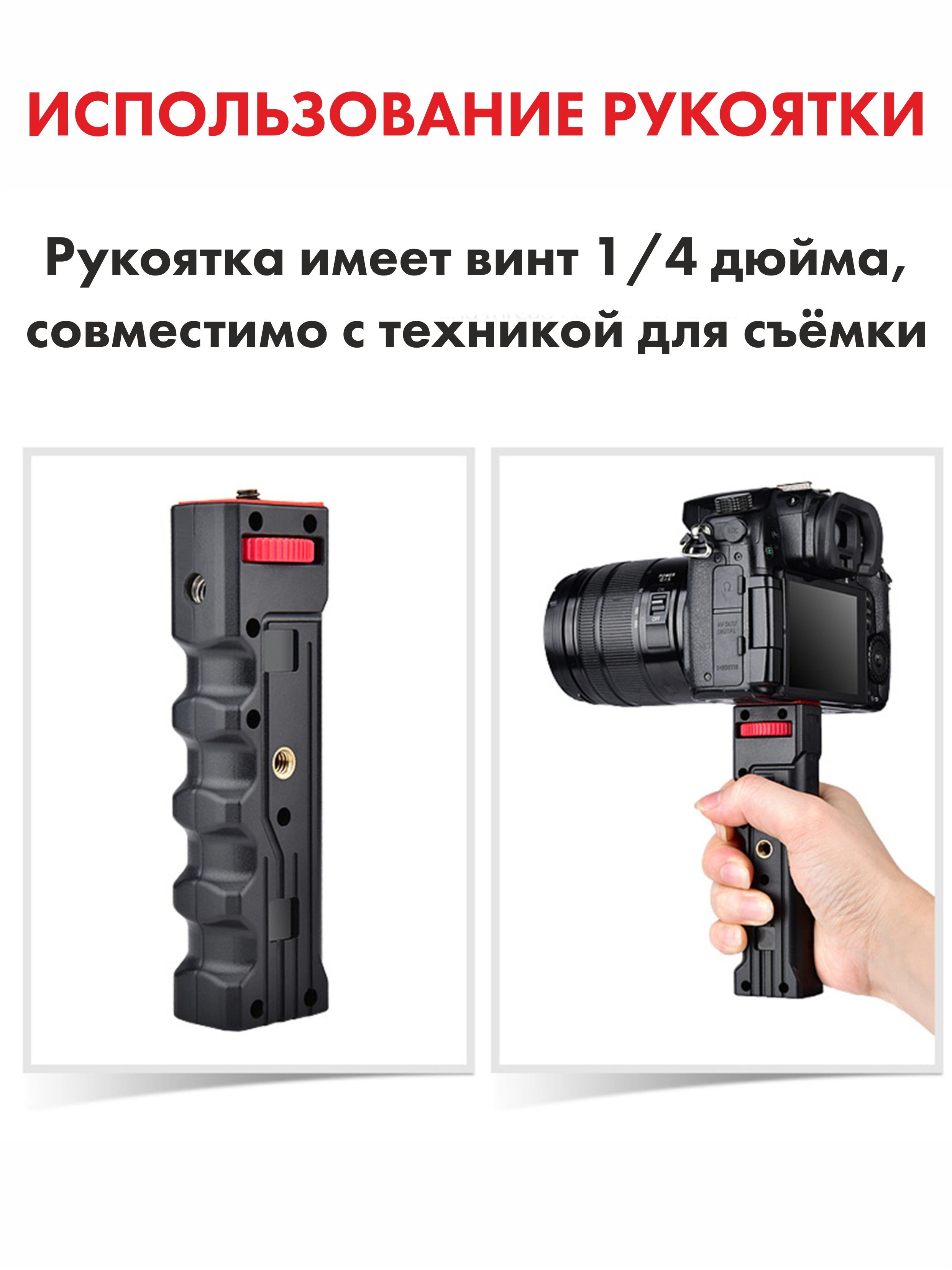 Есть 3 "холодных башмака" - можно одновременно крепить микрофон, свет и другие аксессуары